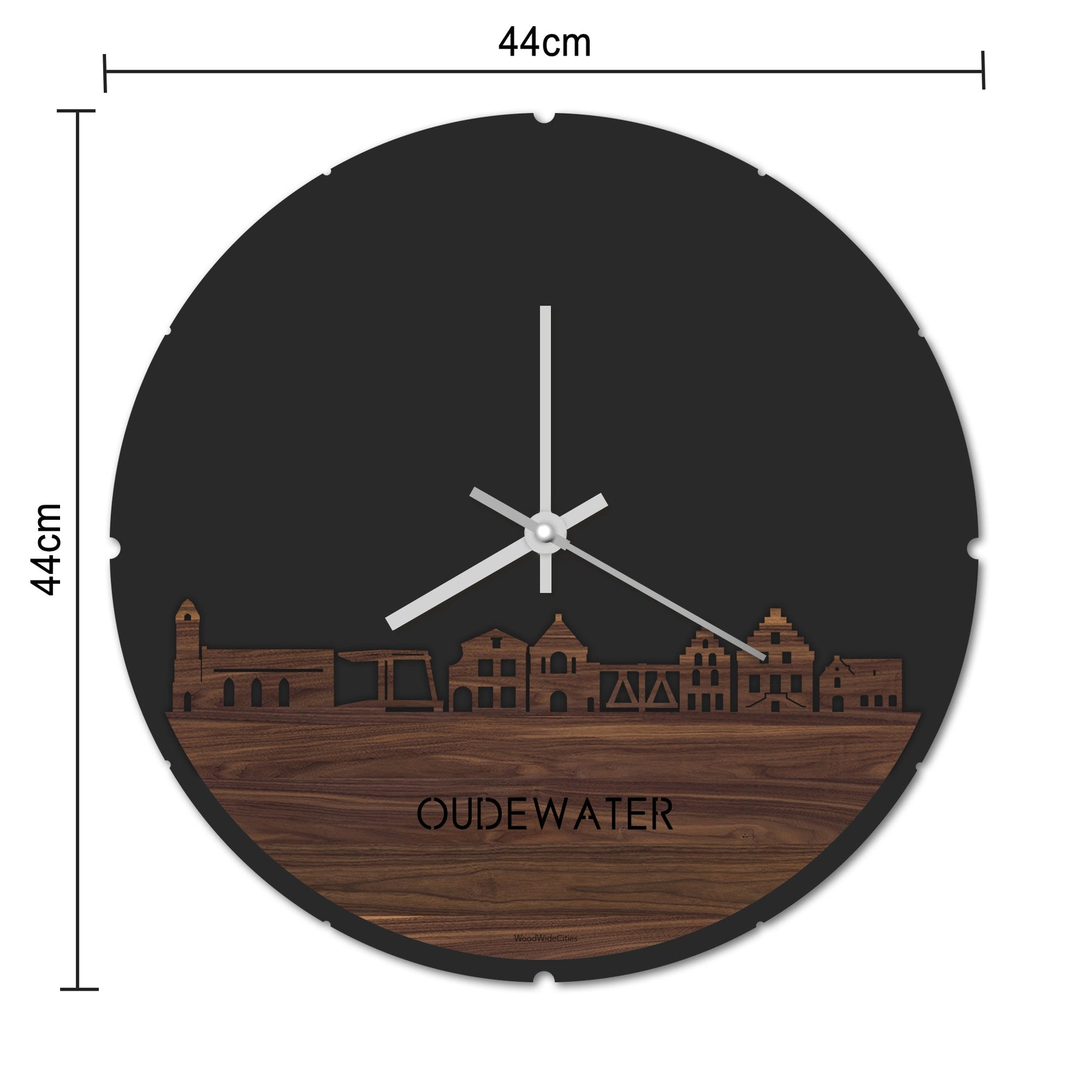 Skyline Klok Rond Oudewater Palissander houten cadeau decoratie relatiegeschenk van WoodWideCities