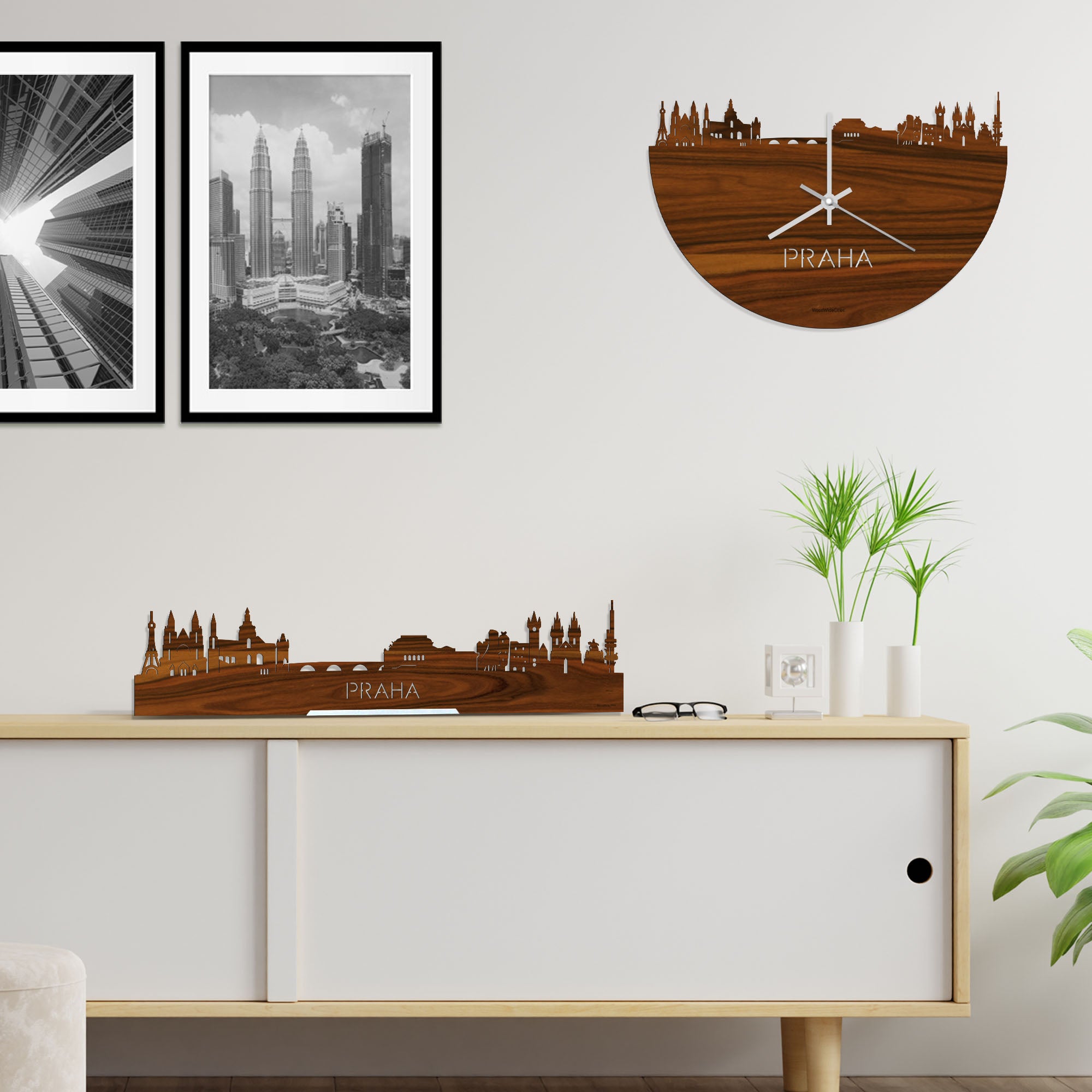 De skyline van Praha is verkrijgbaar in verschillende soorten hout: zwart MDF, eiken, bamboe, noten en palissander. De houtsoorten zijn duurzaam, ecologisch en gekeurd. Dat vinden wij belangrijk! Bij het produceren van houten decoraties komen geen schadelijke stoffen vrij, hout gaat langer mee en het is biologisch afbreekbaar. Daarnaast is de houten afwerking bij elke skyline anders. Dat maakt jouw skyline uniek!