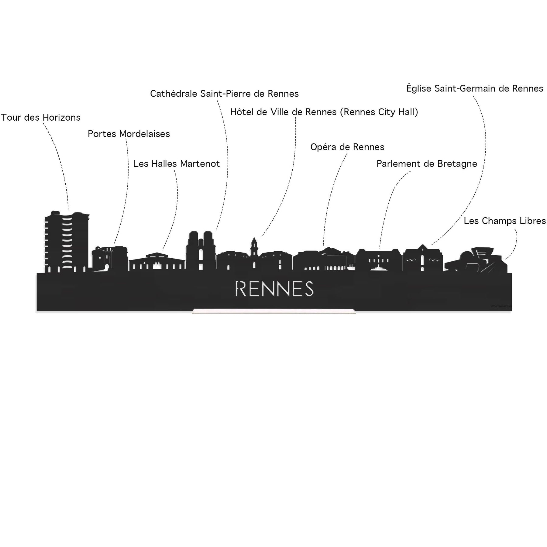 Je herkent ze vast allemaal; de hoogtepunten van deze geliefde plaats: Tour des Horizons, Portes Mordelaises, Les Halles Martenot, Cathédrale Saint-Pierre de Rennes, Hôtel de Ville de Rennes (Rennes City Hall), Opéra de Rennes, Parlement de Bretagne, Église Saint-Germain de Rennes, Les Champs Libres . De skyline is gemaakt in samenwerking met inwoners uit Rennes en het silhouet komt uit het creatieve brein van onze eigen kunstenares. Met liefde gemaakt!