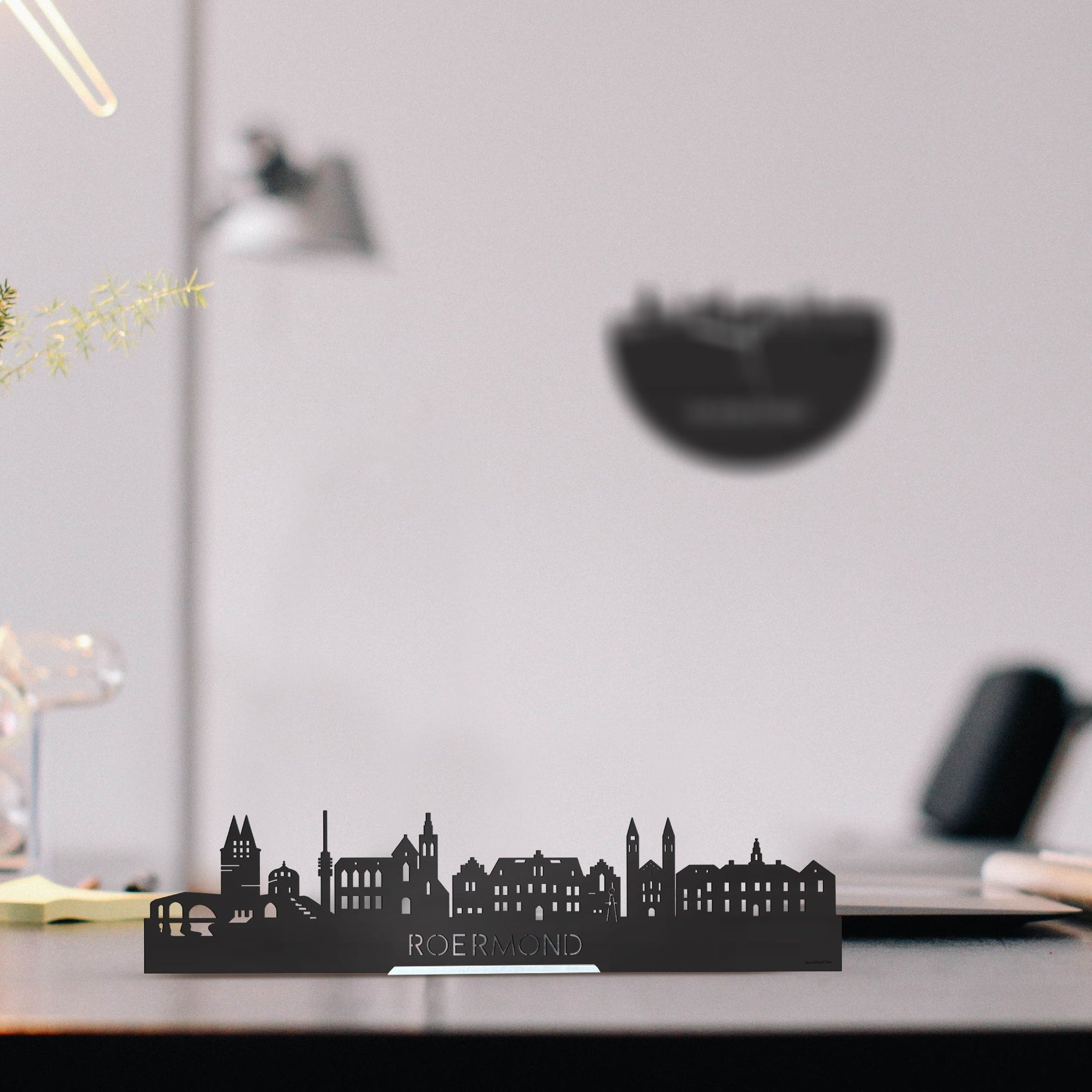 You probably recognize them all; the highlights of this beloved place: Theresia Bridge, Natalinitoren, Rattentoren, TV Tower Roermond, St. Christopher's Cathedral, Cuypershuis, Munsterkerk, Stadshuis Roermond. The skyline was created in collaboration with Roermond entrepreneurs and the silhouette comes from the creative brain of an architect, so all proportions are correct.