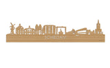 De skyline van Schiedam is verkrijgbaar in verschillende soorten hout: zwart MDF, bamboe, eiken, noten en palissander. De houtsoorten zijn duurzaam, ecologisch en gekeurd.