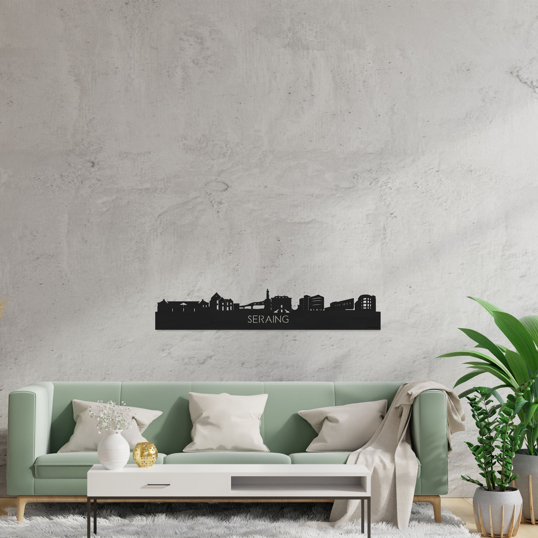 Je herkent ze vast allemaal; de hoogtepunten van deze geliefde plaats: Val Saint-Lambert Crystal Factory, Château d'Ordange, Pont de Seraing, John Cockerill Monument, Hôtel de Ville, Cité Administrative, L'Orangerie, OM Musical Complex. De skyline is gemaakt in samenwerking met inwoners uit Seraing en het silhouet komt uit het creatieve brein van onze eigen kunstenares. Met liefde gemaakt!