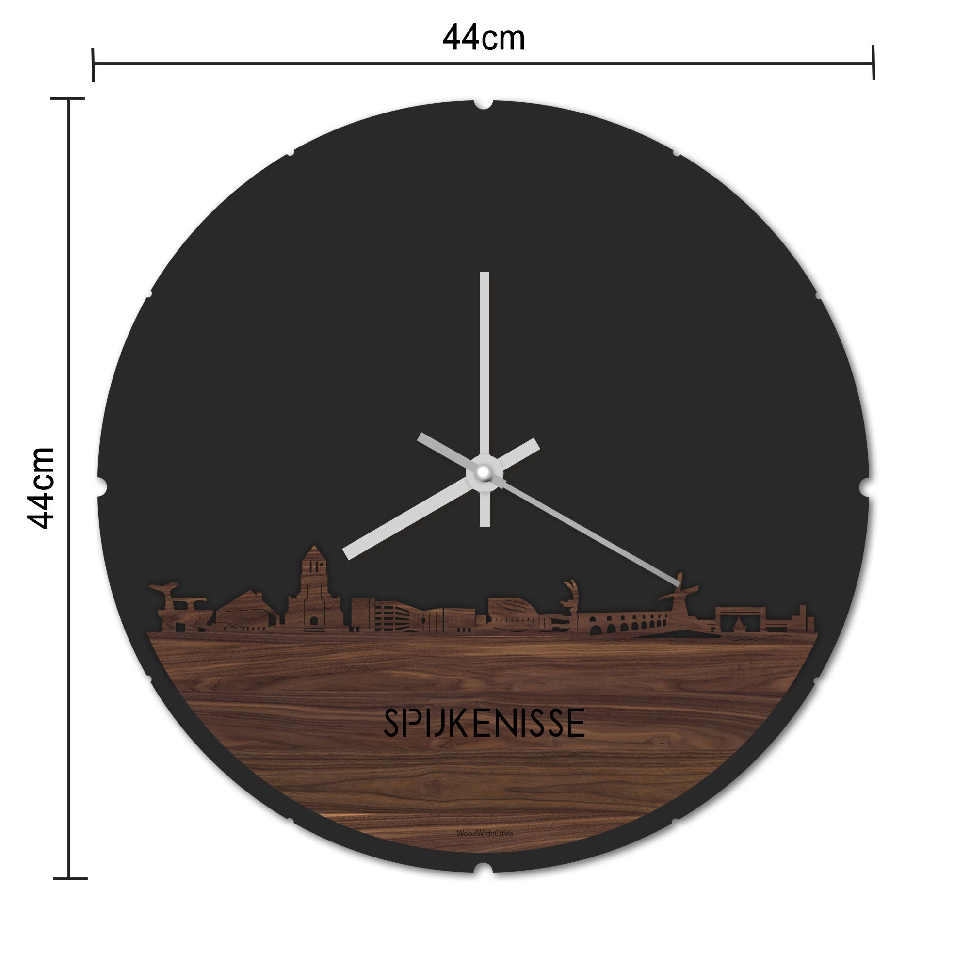 Skyline Klok Rond Spijkenisse Noten houten cadeau decoratie relatiegeschenk van WoodWideCities