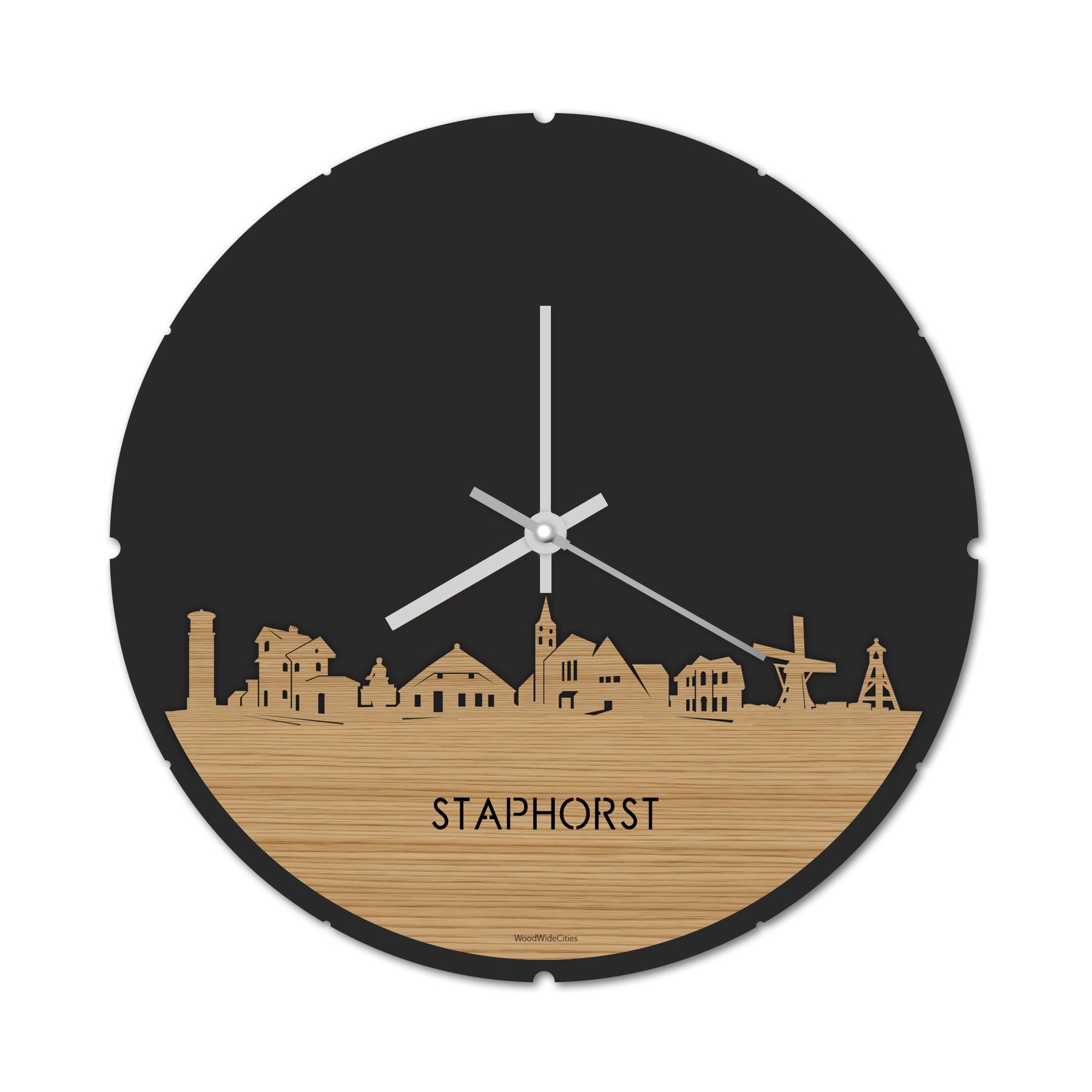 Skyline Klok Rond Staphorst Bamboe houten cadeau decoratie relatiegeschenk van WoodWideCities