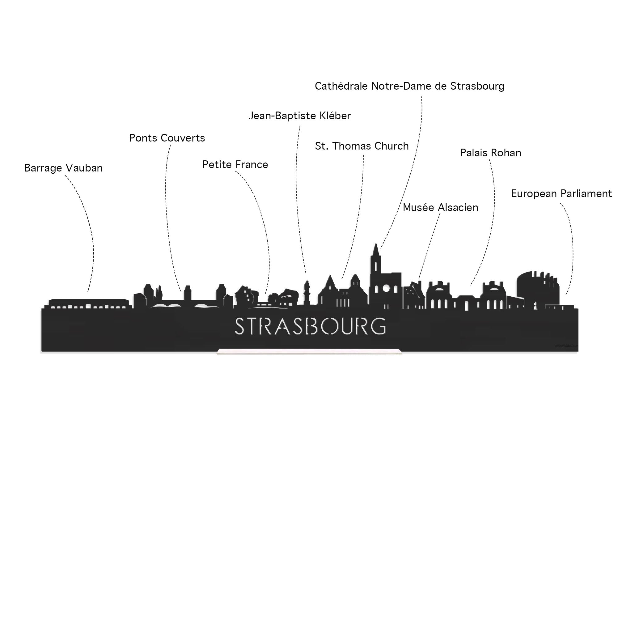 Je herkent ze vast allemaal; de hoogtepunten van deze geliefde plaats: Barrage Vauban, Ponts Couverts, Petite France, Jean-Baptiste Kléber, St. Thomas Church, Cathédrale Notre-Dame de Strasbourg, Musée Alsacien, Palais Rohan, European Parliament . De skyline is gemaakt in samenwerking met inwoners uit Strasbourg en het silhouet komt uit het creatieve brein van onze eigen kunstenares. Met liefde gemaakt!