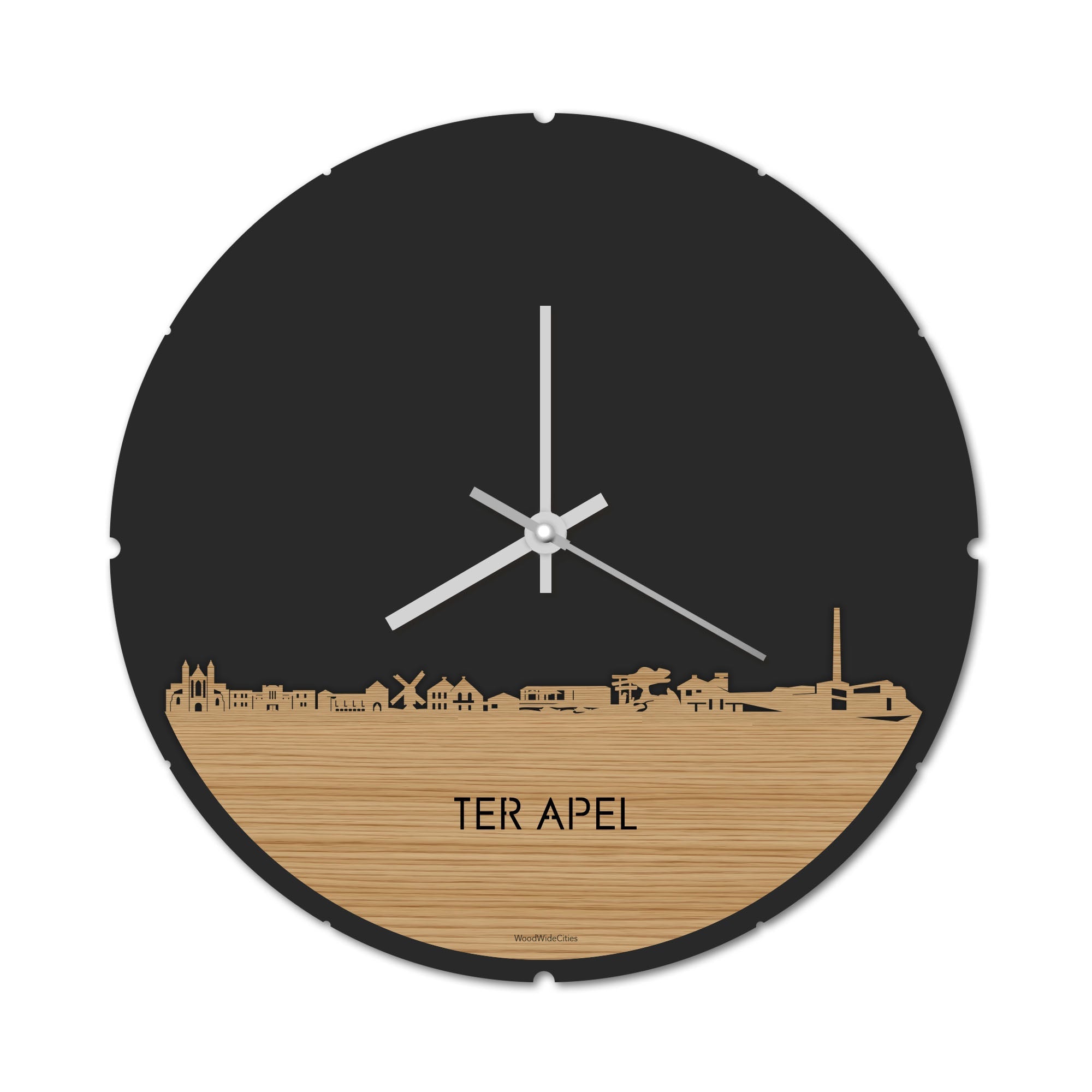 Skyline Klok Rond Ter Apel Bamboe houten cadeau decoratie relatiegeschenk van WoodWideCities