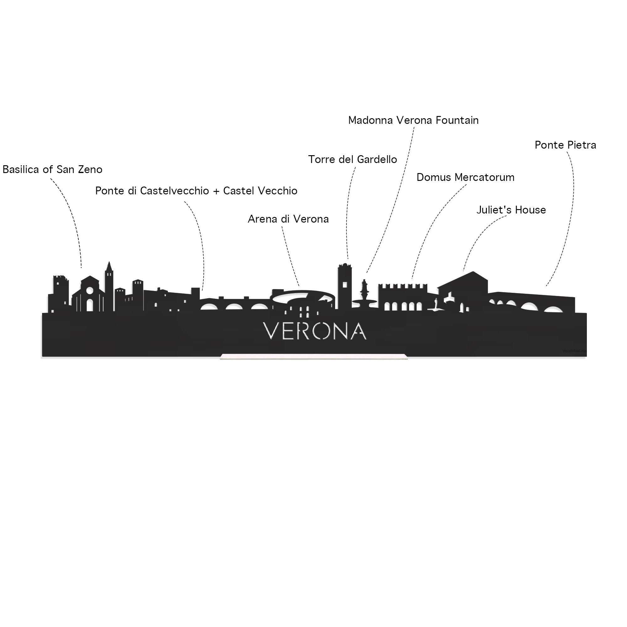 Je herkent ze vast allemaal; de hoogtepunten van deze geliefde plaats: Basilica of San Zeno, Ponte di Castelvecchio + Castel Vecchio, Arena di Verona, Torre del Gardello, Madonna Verona Fountain, Domus Mercatorum, Juliet's House, Ponte Pietra . De skyline is gemaakt in samenwerking met inwoners uit Verona en het silhouet komt uit het creatieve brein van onze eigen kunstenares. Met liefde gemaakt!