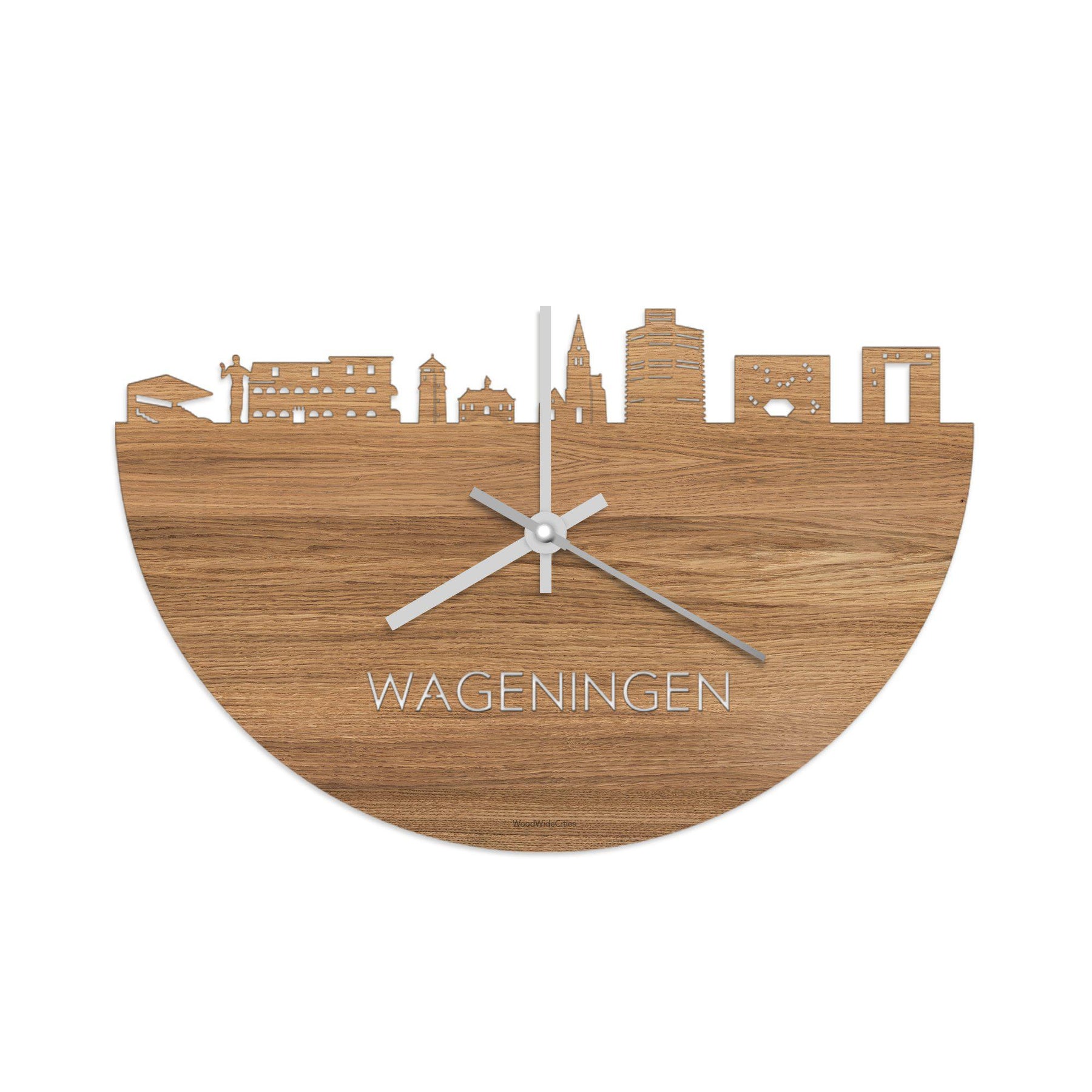 Time flies when you're having fun! That goes double when you get this multifunctional wooden wall clock from WoodWideCities. This clock with an image of the skyline of Wageningen keeps you up to date, but also takes you back to the city where you were born or where you studied. A beautiful memory every time you check the time! Or how about a parting gift, a timeless gift for Mother's or Father's Day and other milestones such as weddings, graduating and opening a new office or company, a splashing entrance for your child who is going to study in another city or an ideal gift for the housewarming of acquaintances and friends.