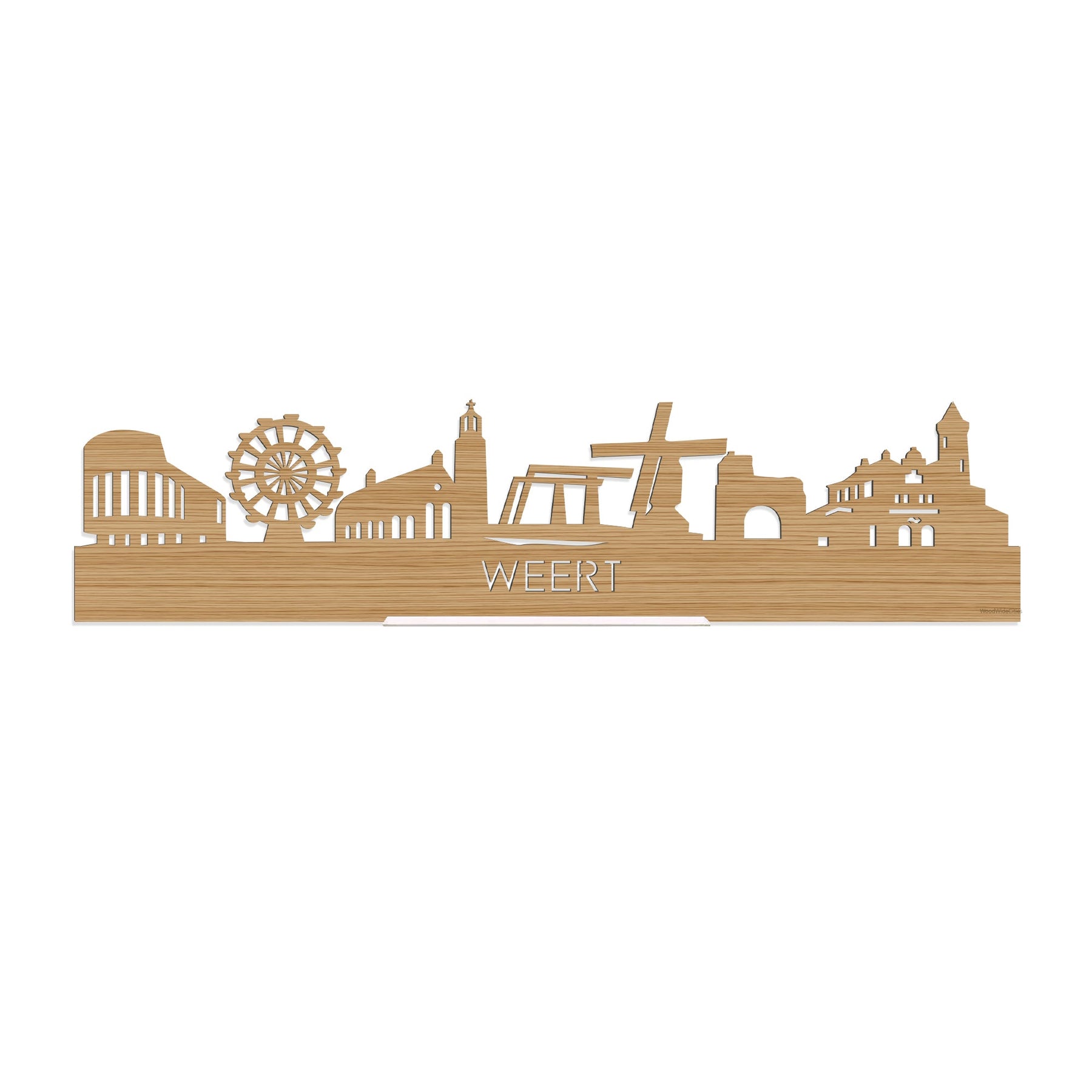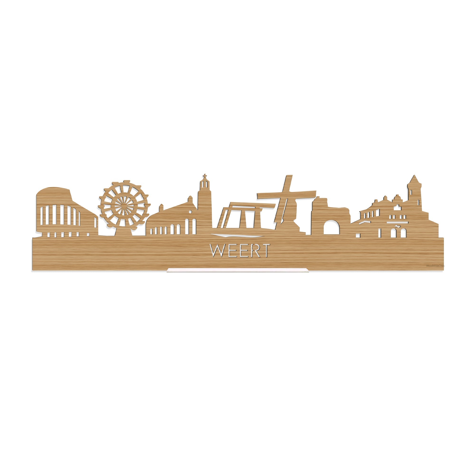Je herkent ze vast allemaal; de hoogtepunten van deze geliefde plaats: Stadhuis gemeente Weert, Reuzenrad, Stadskerk Weert, Biesterbrug, Sint Jan Molen Stramproy, Kasteelpoort Nijenborgh, Station Weert. De skyline is gemaakt in samenwerking met inwoners uit Weert en het silhouet komt uit het creatieve brein van onze eigen kunstenares. Met liefde gemaakt!