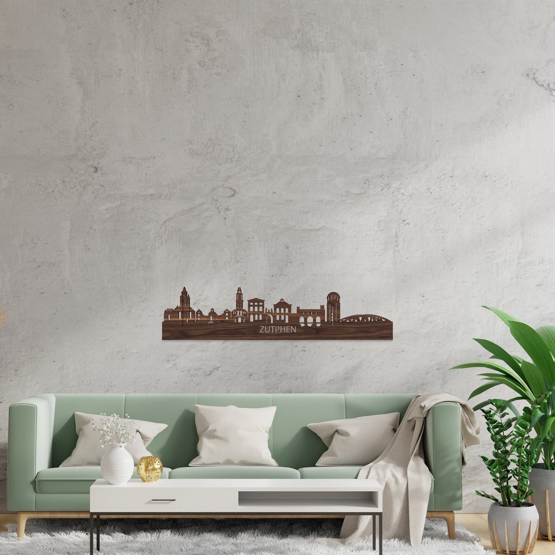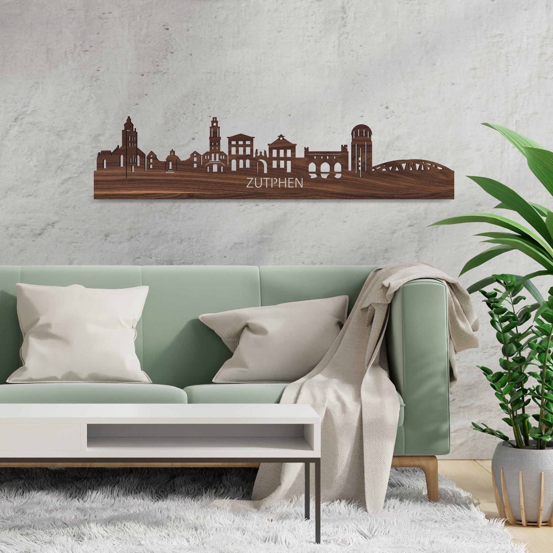 Skyline Zutphen Noten houten cadeau decoratie relatiegeschenk van WoodWideCities