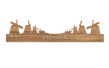 De skyline van Kinderdijk is verkrijgbaar in verschillende soorten hout: zwart MDF, bamboe, eiken, noten en palissander. De houtsoorten zijn duurzaam, ecologisch en gekeurd.