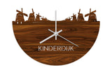 Eiken, Bamboe, Noten, Zwart MDF en Palissander: de wandklok met skyline van Kinderdijk is verkrijgbaar in verschillende soorten hout. De houtsoorten die wij gebruiken zijn duurzaam en hebben een keurmerk. Bij het produceren van houten decoraties komen geen schadelijke stoffen vrij, hout is biologisch afbreekbaar en hout gaat langer mee. Dat vinden wij belangrijk! Daarnaast ‘werkt’ hout, dus is de houten afwerking elke keer anders. Zo heeft die ene wandklok wel een kring en de andere niet. Dat maakt jouw klok uniek!