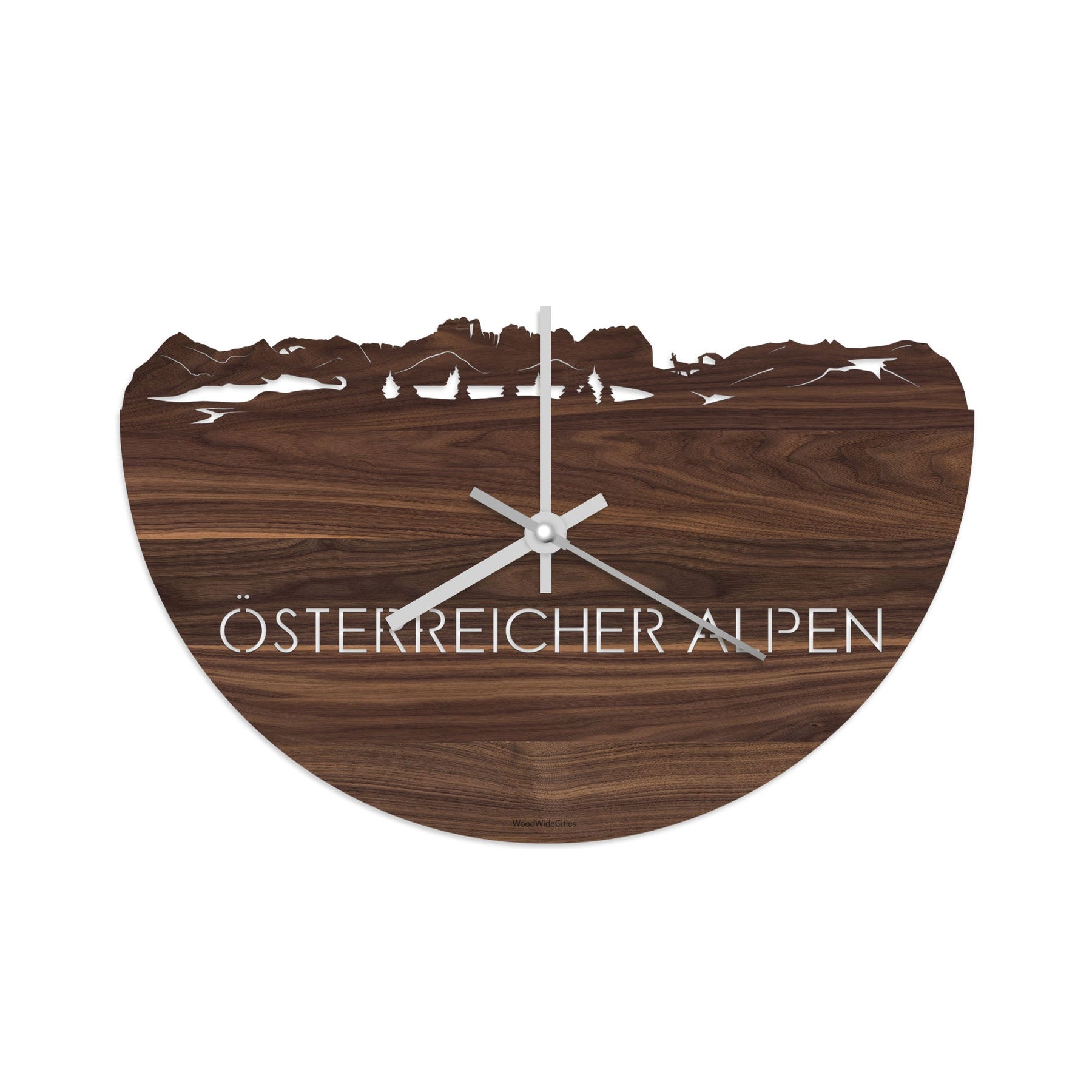 Skyline Klok Österreicher Alpen Noten houten cadeau decoratie relatiegeschenk van WoodWideCities