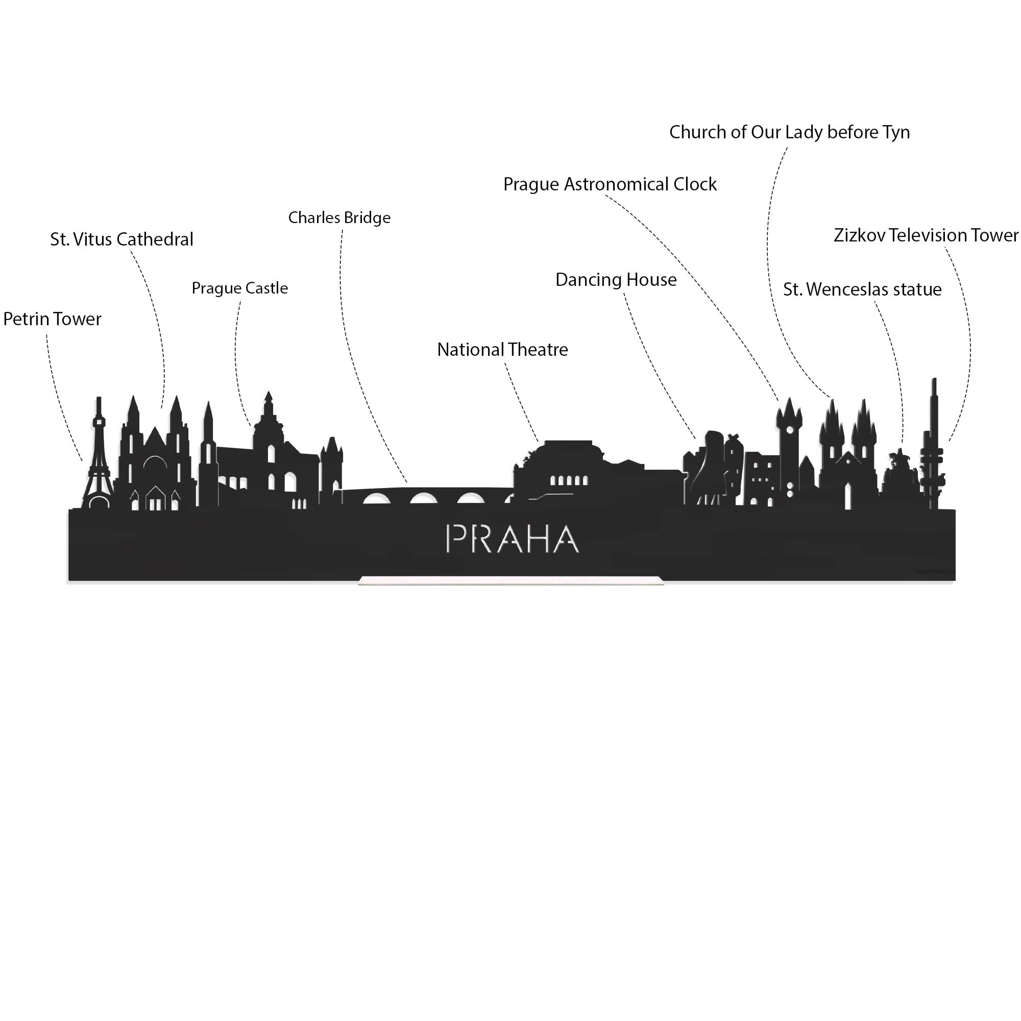 Je herkent ze vast allemaal; de hoogtepunten van deze geliefde plaats: Petrin Tower, St. Vitus Cathedral, Prague Castle, Charles Bridge, National Theatre, Dancing House, Prague Astronomical Clock, Church of Our Lady before Tyn, St. Wenceslas statue, Zizkov Television Tower . De skyline is gemaakt in samenwerking met inwoners uit Praha en het silhouet komt uit het creatieve brein van onze eigen kunstenares. Met liefde gemaakt!