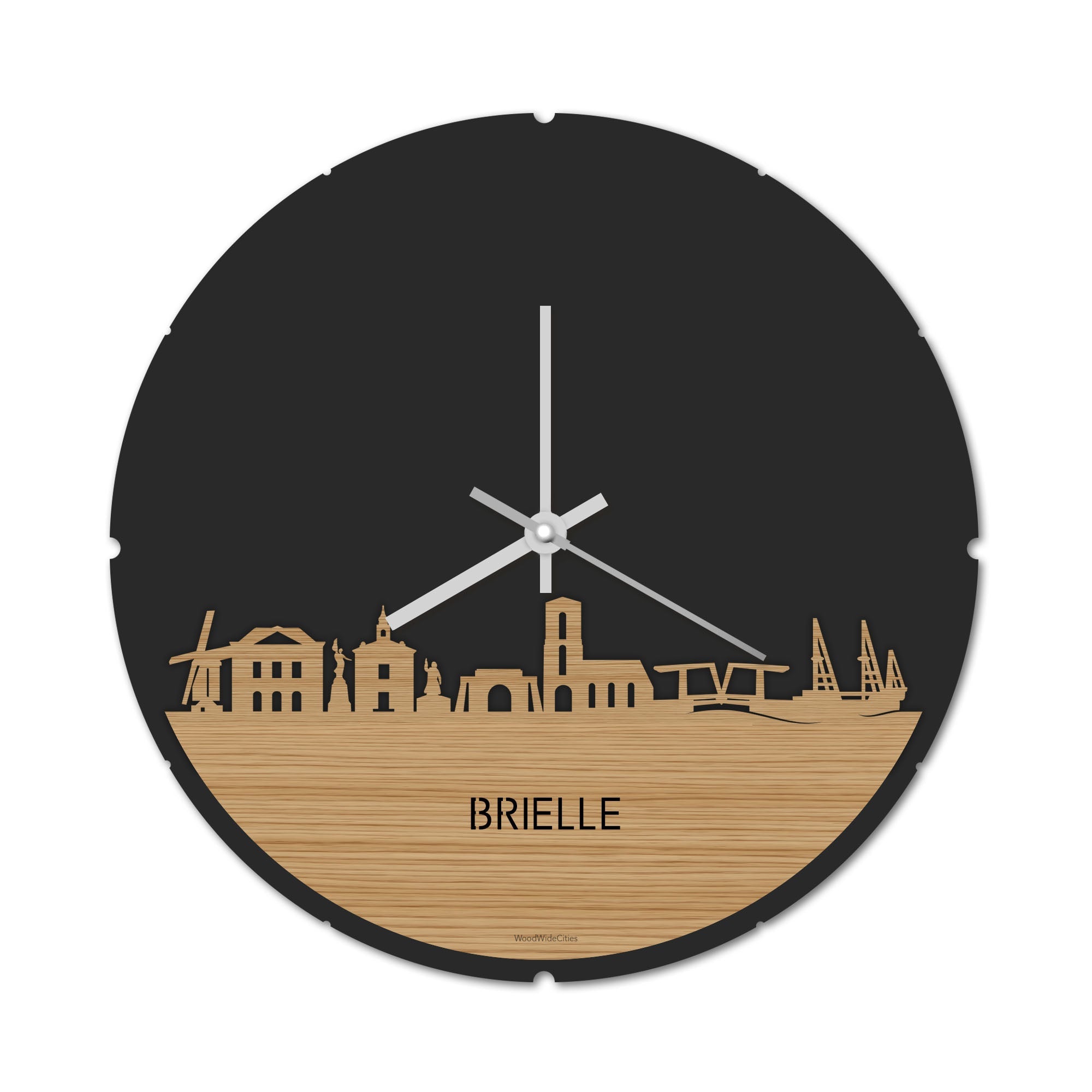 Blijf bij de tijd met de ronde skyline wandklok Dat geldt dubbelop als je deze multifunctionele houten wandklok van WoodWideCities in huis haalt. Deze klok met afbeelding van de skyline van Brielle houdt je bij de tijd, maar neemt je ook mee terug naar de stad waar je bent geboren of waar je hebt gestudeerd. Een mooie herinnering, elke keer als je kijkt hoe laat het is! Of wat dacht je van een afscheidscadeau, een tijdloos geschenk voor moeder- of vaderdag en andere mijlpalen zoals trouwerijen, het behalen van diploma’s en het openen van een nieuw kantoor of bedrijf, een spetterende binnenkomer voor je kind die gaat studeren in een andere stad of een ideaal cadeau voor de housewarming van kennissen en vrienden.