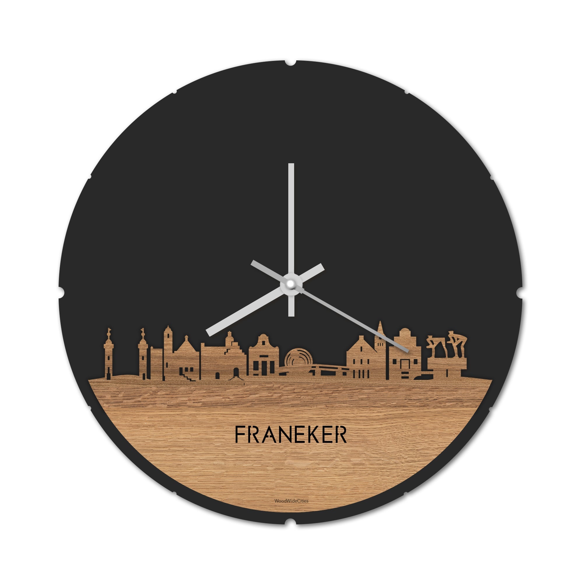 Dat geldt zeker als je de Skyline Klok Rond Franeker Eiken in huis haalt. Deze klok met de skyline van Franeker houdt je bij de tijd, maar neemt je ook mee terug naar de stad waar je bent geboren of waar je hebt gestudeerd. Een mooie herinnering, elke keer als je kijkt hoe laat het is! Of wat dacht je van een afscheidscadeau, een tijdloos geschenk voor moeder- of vaderdag en andere mijlpalen zoals trouwerijen, het behalen van diploma’s en het openen van een nieuw kantoor of bedrijf, een spetterende binnenkomer voor je kind die gaat studeren in een andere stad of een ideaal cadeau voor de housewarming van kennissen en vrienden.