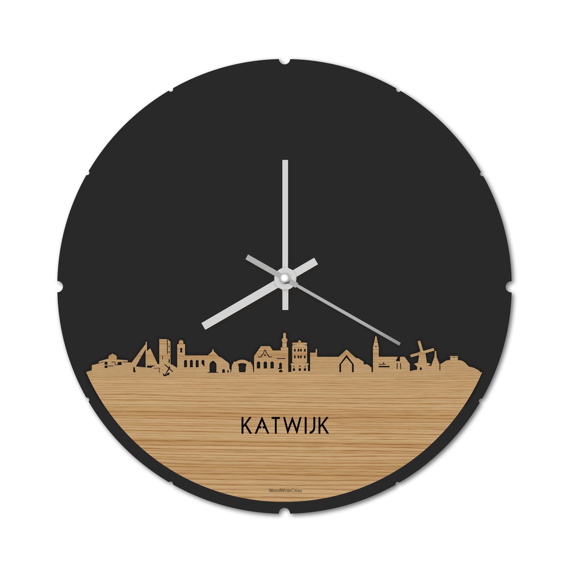 Skyline Klok Rond Katwijk Bamboe houten cadeau decoratie relatiegeschenk van WoodWideCities