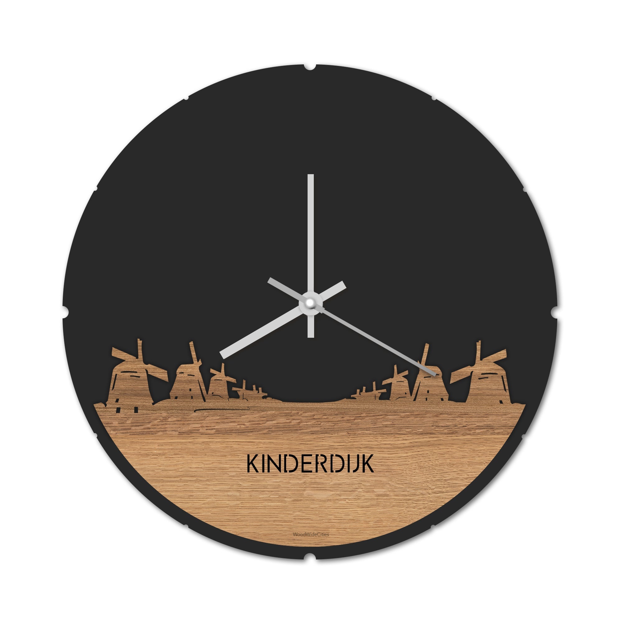 Blijf bij de tijd met de ronde skyline wandklok Dat geldt dubbelop als je deze multifunctionele houten Skyline Klok Rond Kinderdijk Eiken in huis haalt. Deze klok met de skyline van Kinderdijk houdt je bij de tijd, maar neemt je ook mee terug naar de stad waar je bent geboren of waar je hebt gestudeerd. Een mooie herinnering, elke keer als je kijkt hoe laat het is! Of wat dacht je van een afscheidscadeau, een tijdloos geschenk voor moeder- of vaderdag en andere mijlpalen zoals trouwerijen, het behalen van diploma’s en het openen van een nieuw kantoor of bedrijf, een spetterende binnenkomer voor je kind die gaat studeren in een andere stad of een ideaal cadeau voor de housewarming van kennissen en vrienden.