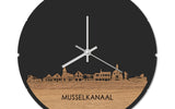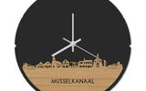 Skyline Klok Rond Musselkanaal Eiken Eiken houten cadeau decoratie relatiegeschenk van WoodWideCities