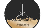 Skyline Klok Rond Musselkanaal Eiken houten cadeau decoratie relatiegeschenk van WoodWideCities