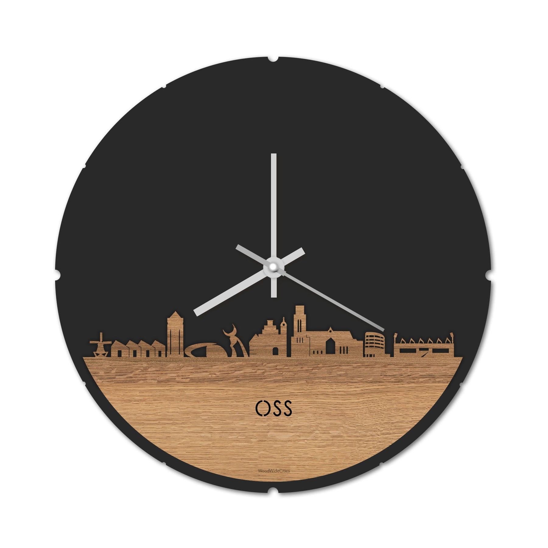 Skyline Klok Rond Oss Black Zwart houten cadeau decoratie relatiegeschenk van WoodWideCities