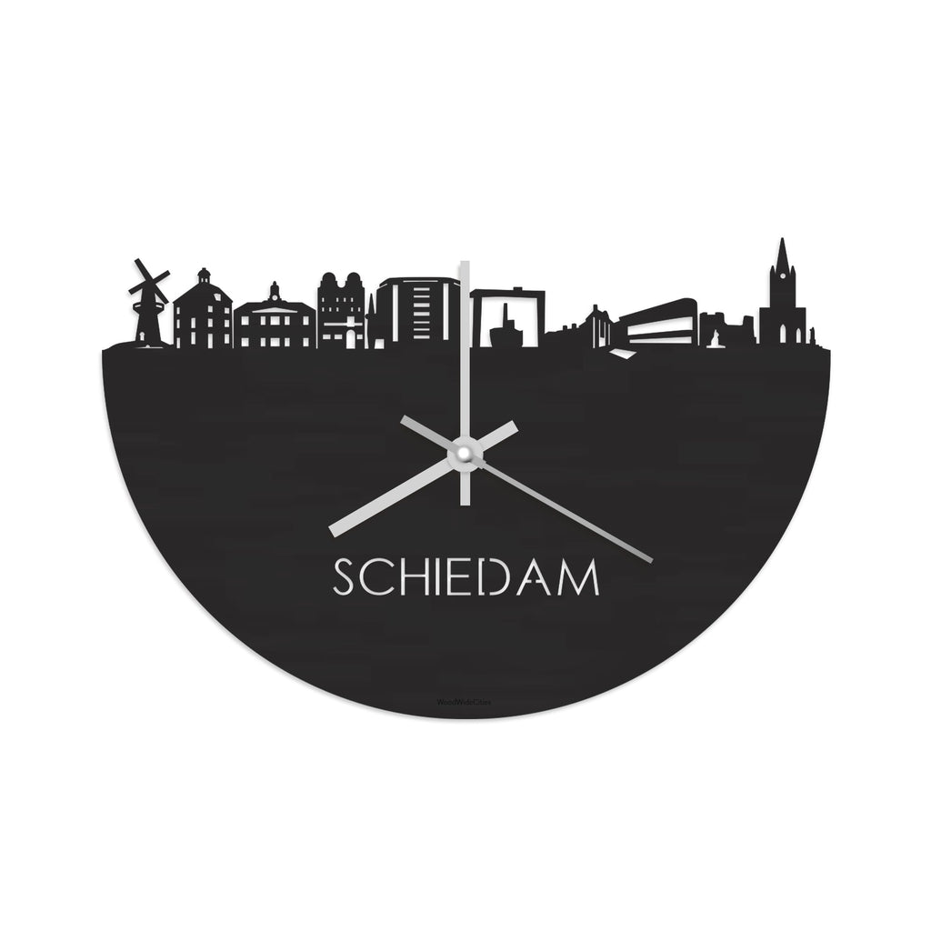 Skyline Klok Schiedam Black Zwart houten cadeau decoratie relatiegeschenk van WoodWideCities