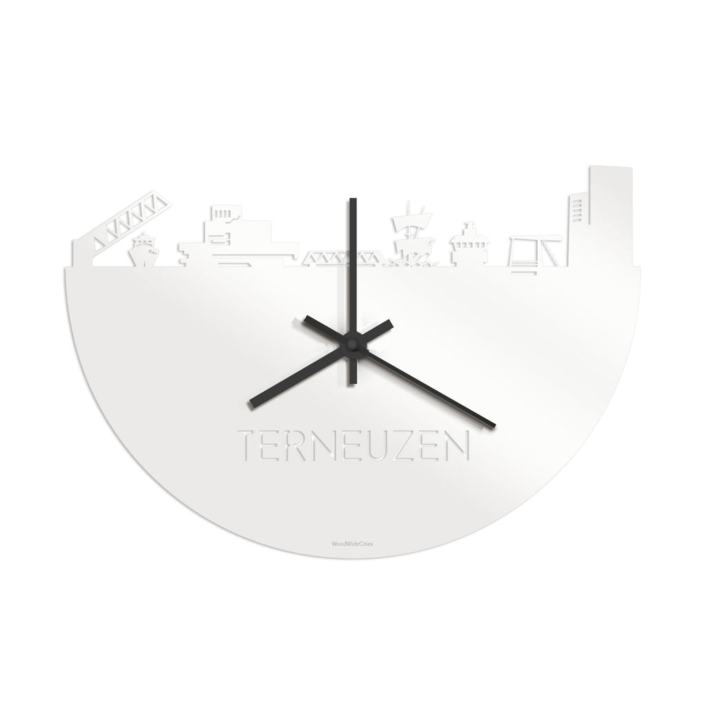 Skyline Klok Terneuzen Wit glanzend gerecycled kunststof cadeau decoratie relatiegeschenk van WoodWideCities