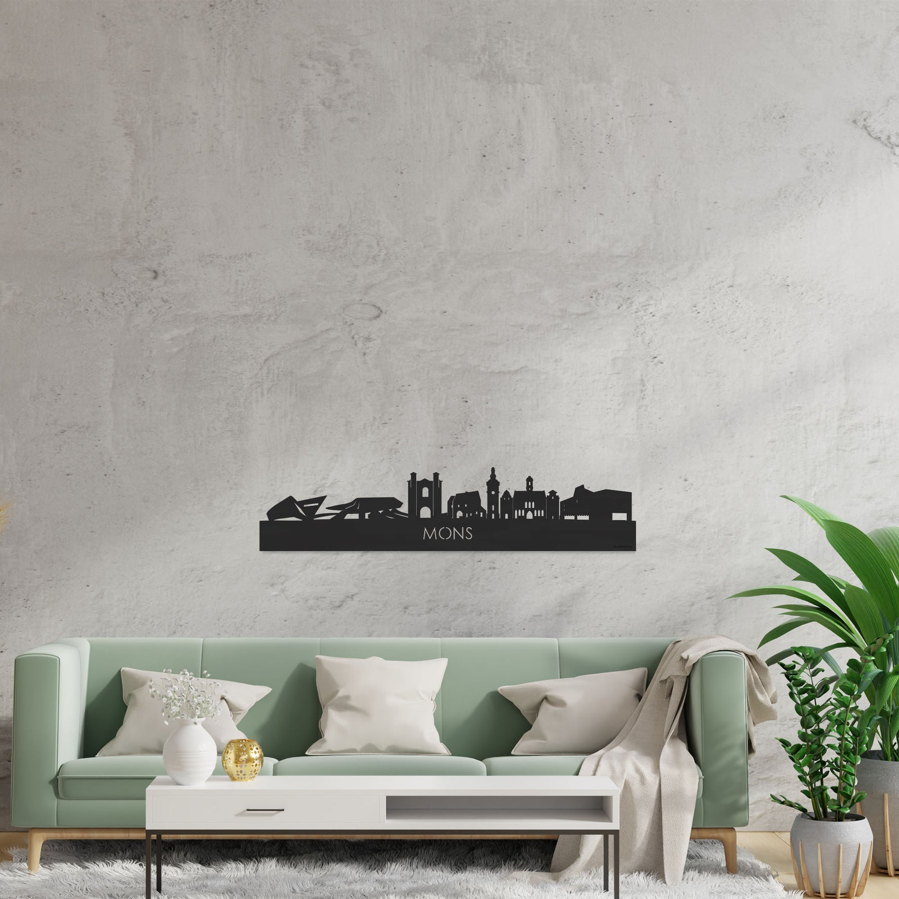 Je herkent ze vast allemaal; de hoogtepunten van deze geliefde plaats: MICX - Le Centre de Congrès de Mons, La nouvelle Gare de Mons, Collégiale Sainte-Waudru, Chapelle Saint-Calixte, Beffroi de Mons, Hôtel de Ville de Mons, Arsonic. De skyline is gemaakt in samenwerking met inwoners uit Mons en het silhouet komt uit het creatieve brein van onze eigen kunstenares. Met liefde gemaakt!