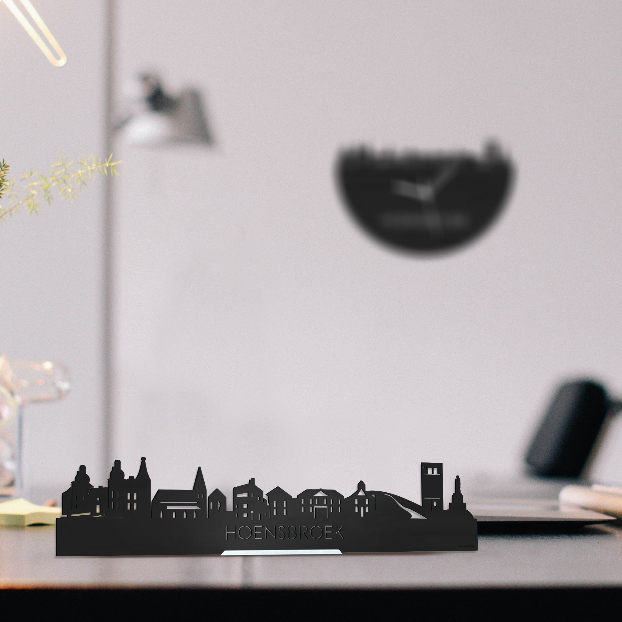 Je herkent ze vast allemaal; de hoogtepunten van deze geliefde plaats: Kasteel Hoensbroek, Kleine Sint Janskerk, Oorlogsmonument Hoensbroek, Voormalig Café in ghen Haen, Oude Gemeentehuis Hoensbroek, Oude Gemeentehuis Hoensbroek, Koumenberg, Voormalige Emma staatsmijn en Heilig Hart Beeld Kerkplein. De skyline is gemaakt in samenwerking met Hoensbroek ondernemers en het silhouet komt uit het creatieve brein van een architect, dus alle verhoudingen kloppen.