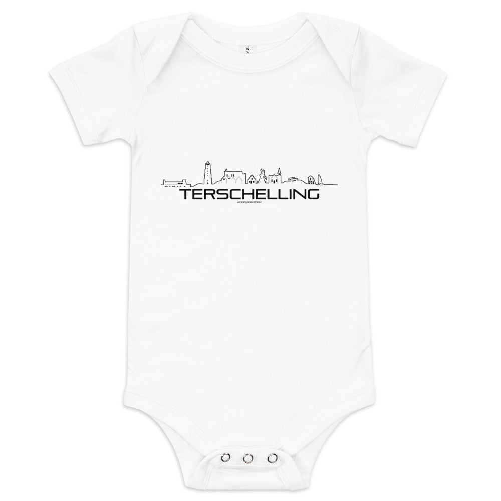 Het baby rompertje van 100% katoen met de skyline van Terschelling is super cool voor elke baby. Het heeft drie drukknopen bij de pijp om gemakkelijk te kunnen verschonen, een comfortabele enveloppe hals en een mooie print die de baby helemaal gelukkig maakt.Deze baby romper van WoodWideCities is super leuk om te geven op een baby shower, na de geboorte of als een verjaardagscadeautje. Helemaal leuk en persoonlijk! Deze baby zal gegarandeerd de show stelen.