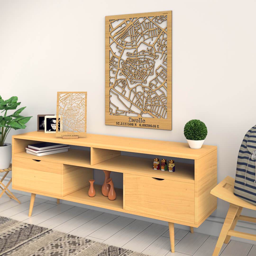 Citymap Zwolle houten cadeau decoratie relatiegeschenk van WoodWideCities