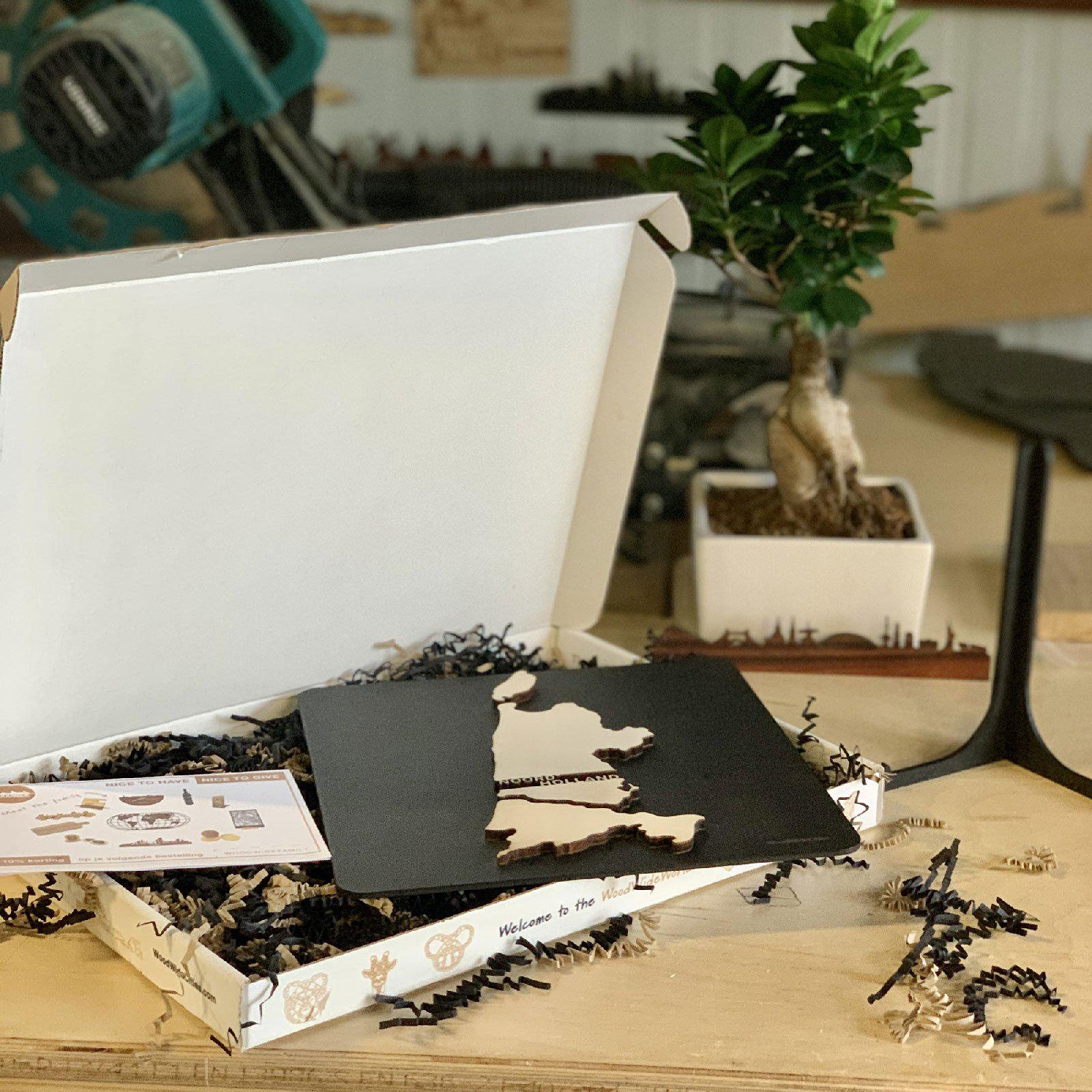 Dit unieke provincie cadeau wordt geleverd met een houten standaard om hem neer te zetten en een handig ophang-haakje zodat je hem ook kunt ophangen aan de muur.