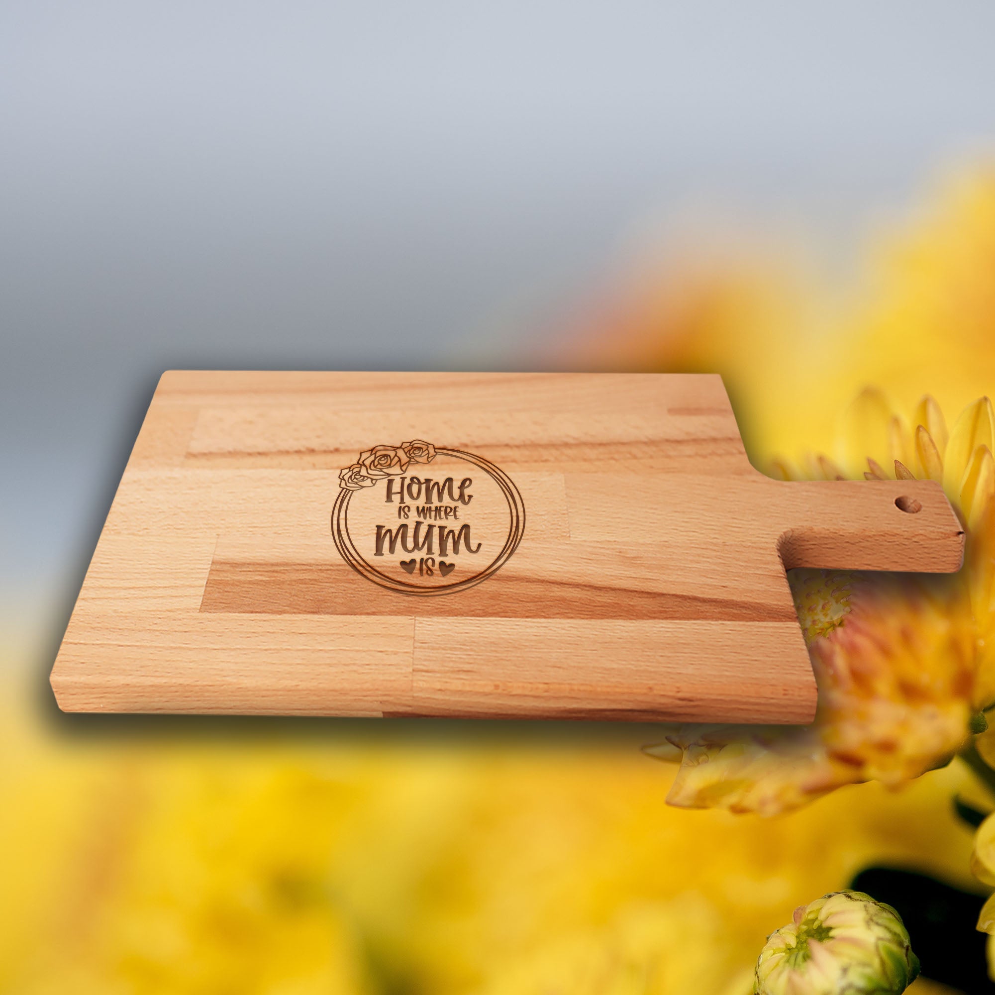 Deze serveerplank is niet alleen mooi en duurzaam, maar ook handgemaakt in Nederland. Op zoek naar een cadeau voor moederdag? Dan is deze serveerplank met een prachtige Home Is Where Mum Is gravure het perfecte cadeau!