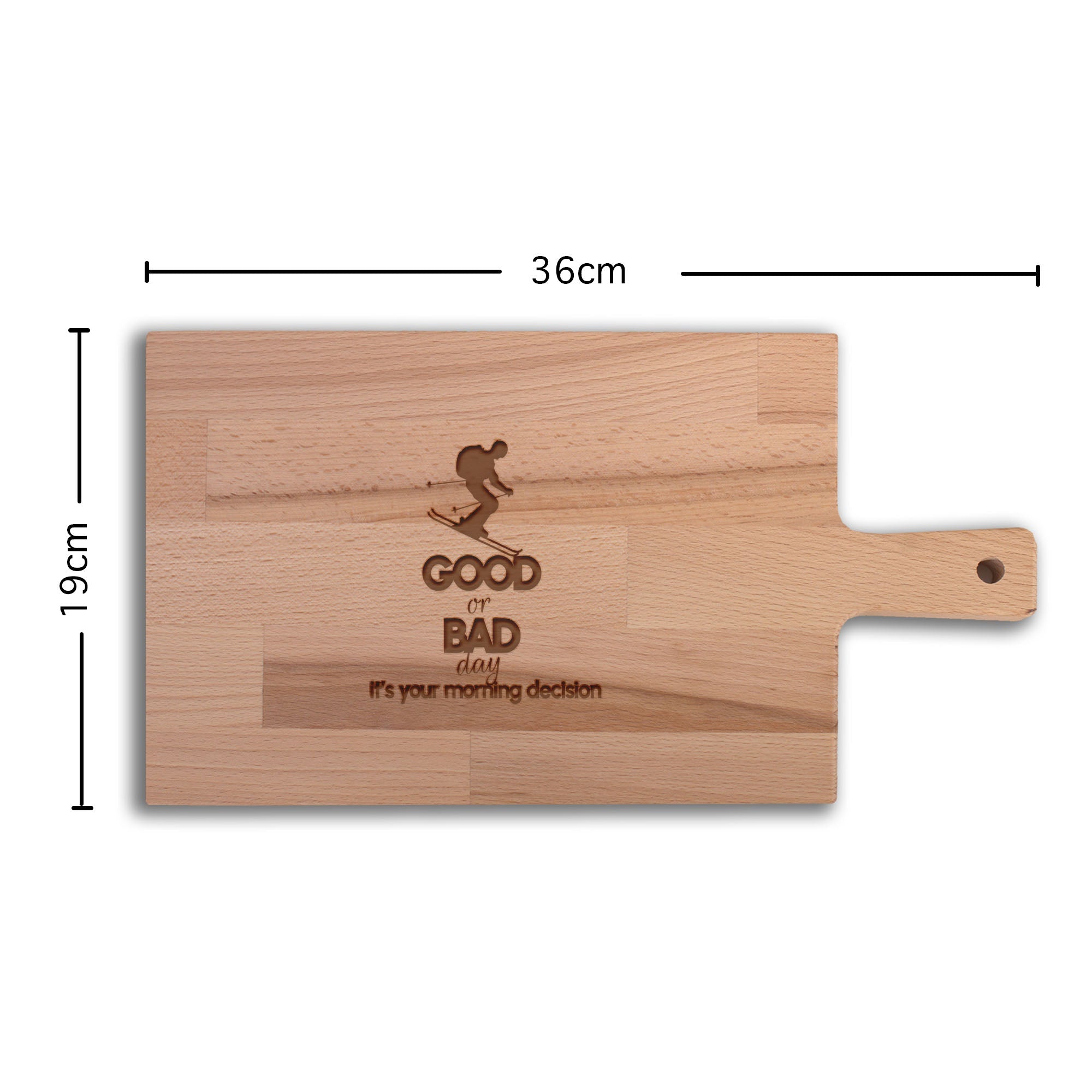 Deze sport serveerplank is niet alleen mooi en duurzaam, maar ook handgemaakt in Nederland. Op zoek naar een cadeau voor een skiën liefhebber? Dan is deze serveerplank met een prachtig skiën illustratie en tekst Good or Bad Day Your Morning Decision gravure, het perfecte cadeau!