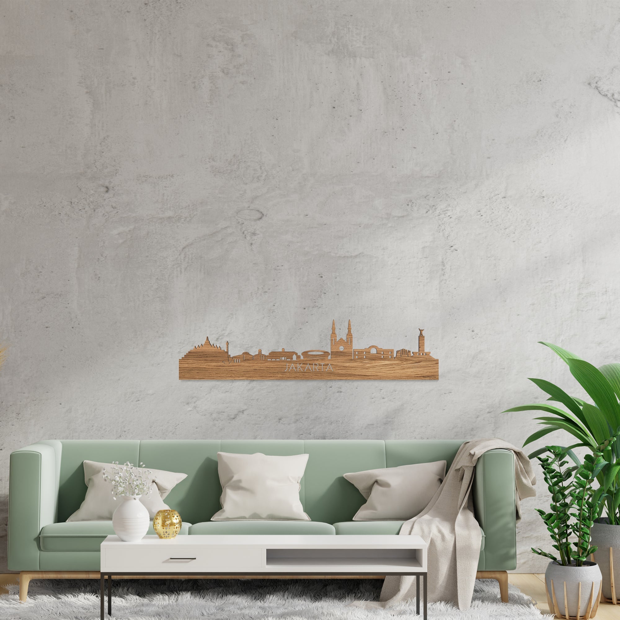 Met deze wanddecoratie van Skyline Jakarta Eiken aan de muur heb je een echte eyecatcher in huis. Het is een mooie herinnering aan je geboorteplaats, een aandenken van die te gekke stedentrip of de stad waar je jarenlang hebt gestudeerd. Een leuk afscheidscadeau of een bijzonder geschenk voor moeder- of vaderdag en andere mijlpalen zoals het behalen van diploma’s, een spetterend cadeau voor je dochter die gaat studeren in een andere stad of voor een housewarming. Geef je deze skyline van cadeau, dan steel jij gegarandeerd de show!