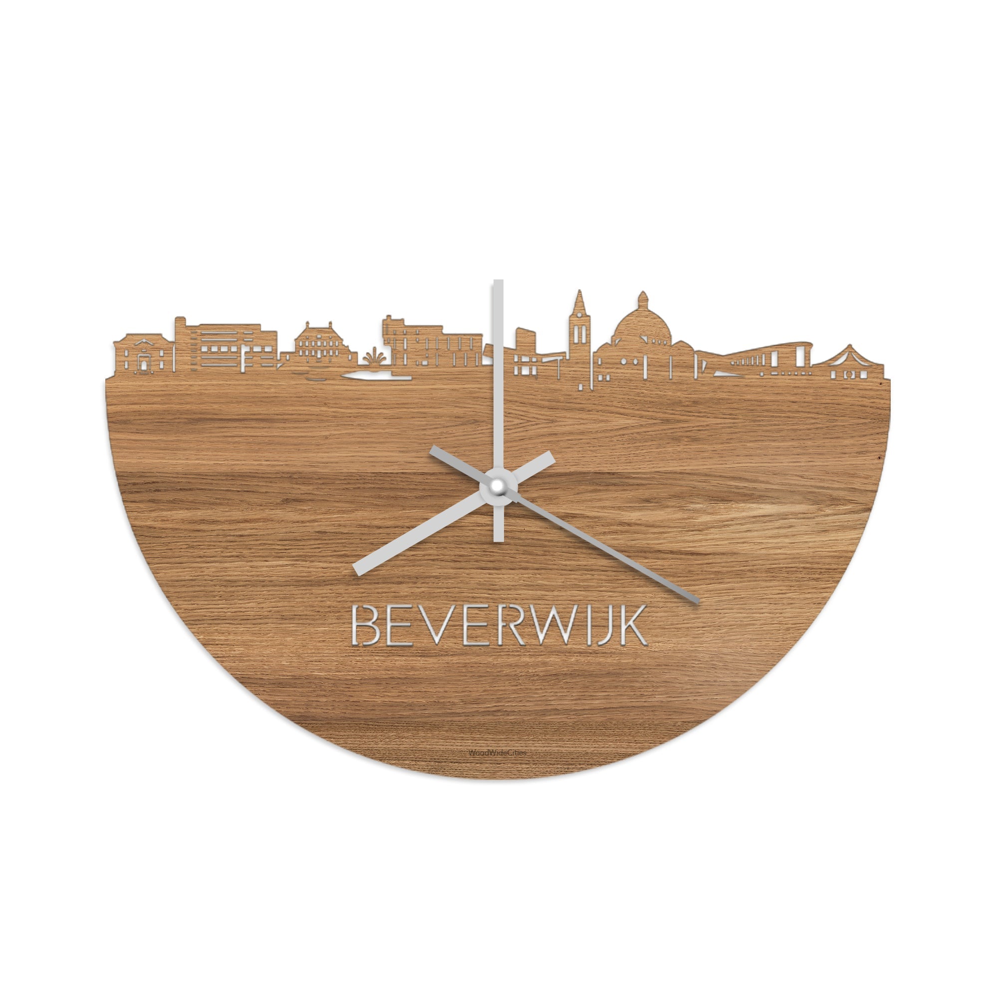 Time flies when you’re having fun! Dat geldt dubbelop als je deze multifunctionele houten wandklok van WoodWideCities in huis haalt. Deze klok met afbeelding van de skyline van Beverwijk houdt je bij de tijd, maar neemt je ook mee terug naar de stad waar je bent geboren of waar je hebt gestudeerd. Een mooie herinnering, elke keer als je kijkt hoe laat het is! Of wat dacht je van een afscheidscadeau, een tijdloos geschenk voor moeder- of vaderdag en andere mijlpalen zoals trouwerijen, het behalen van diploma’s en het openen van een nieuw kantoor of bedrijf, een spetterende binnenkomer voor je kind die gaat studeren in een andere stad of een ideaal cadeau voor de housewarming van kennissen en vrienden.
