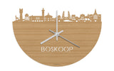 Eiken, Bamboe, Noten, Zwart MDF en Palissander: de wandklok met skyline van Boskoop is verkrijgbaar in verschillende soorten hout. De houtsoorten die wij gebruiken zijn duurzaam en hebben een keurmerk. Bij het produceren van houten decoraties komen geen schadelijke stoffen vrij, hout is biologisch afbreekbaar en hout gaat langer mee. Dat vinden wij belangrijk! Daarnaast ‘werkt’ hout, dus is de houten afwerking elke keer anders. Zo heeft die ene wandklok wel een kring en de andere niet. Dat maakt jouw klok uniek!
