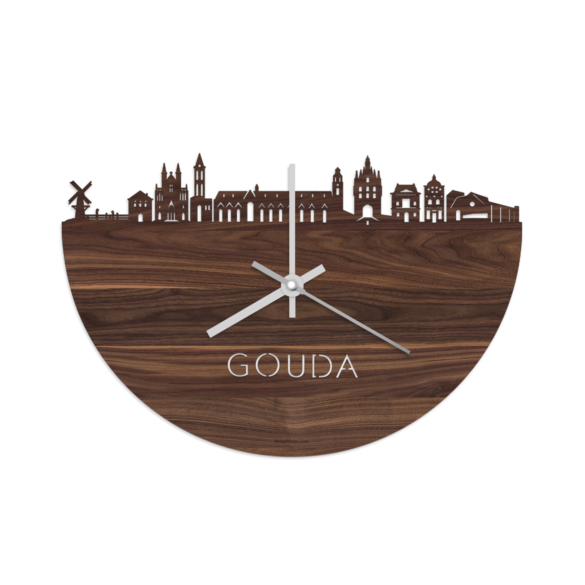 Time flies when you’re having fun! Dat geldt dubbelop als je deze multifunctionele houten wandklok van WoodWideCities in huis haalt. Deze klok met afbeelding van de skyline van Gouda houdt je bij de tijd, maar neemt je ook mee terug naar de stad waar je bent geboren of waar je hebt gestudeerd. Een mooie herinnering, elke keer als je kijkt hoe laat het is! Of wat dacht je van een afscheidscadeau, een tijdloos geschenk voor moeder- of vaderdag en andere mijlpalen zoals trouwerijen, het behalen van diploma’s en het openen van een nieuw kantoor of bedrijf, een spetterende binnenkomer voor je kind die gaat studeren in een andere stad of een ideaal cadeau voor de housewarming van kennissen en vrienden.