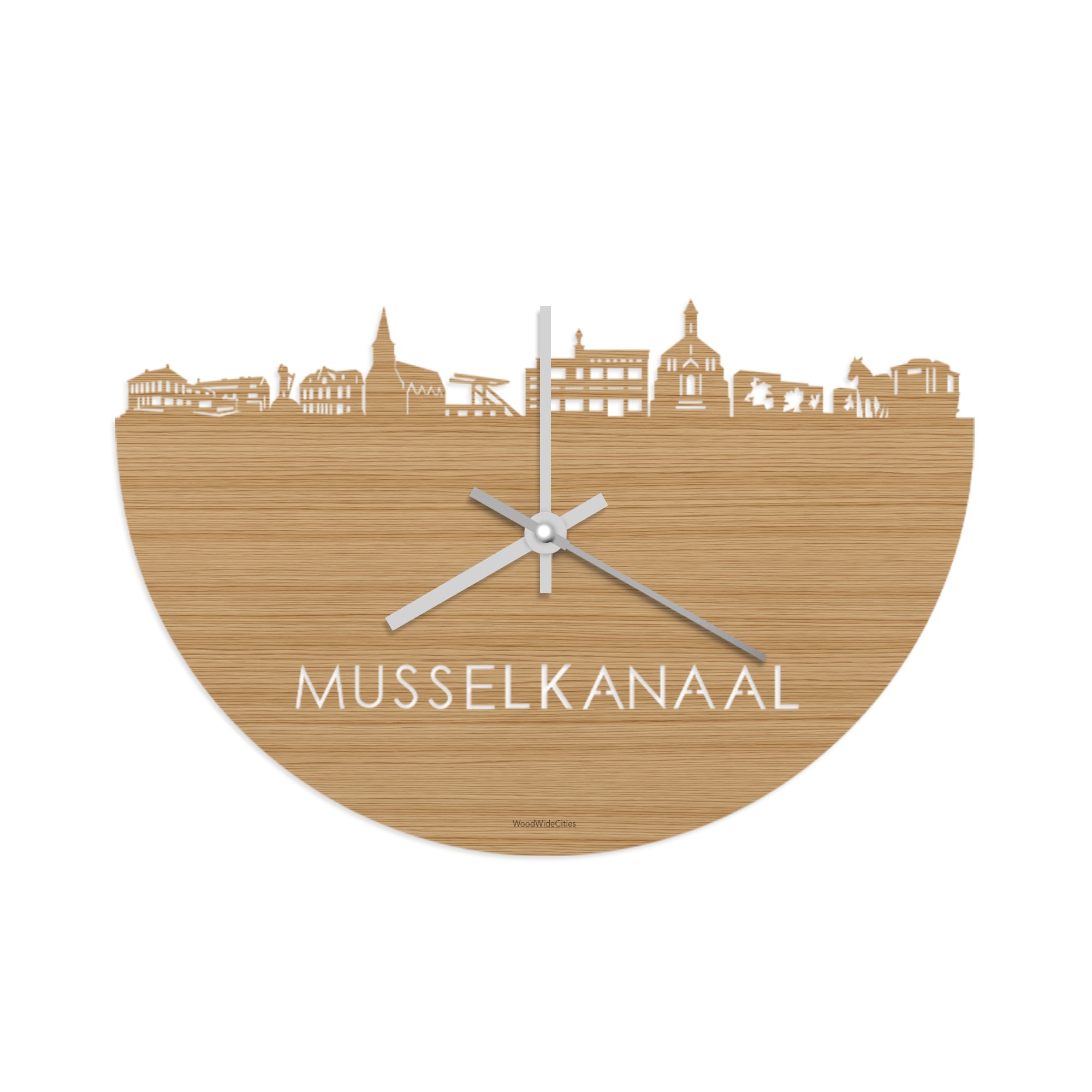 Time flies when you’re having fun! Dat geldt dubbelop als je deze multifunctionele houten wandklok van WoodWideCities in huis haalt. Deze klok met afbeelding van de skyline van Musselkanaal houdt je bij de tijd, maar neemt je ook mee terug naar de stad waar je bent geboren of waar je hebt gestudeerd. Een mooie herinnering, elke keer als je kijkt hoe laat het is! Of wat dacht je van een afscheidscadeau, een tijdloos geschenk voor moeder- of vaderdag en andere mijlpalen zoals trouwerijen, het behalen van diploma’s en het openen van een nieuw kantoor of bedrijf, een spetterende binnenkomer voor je kind die gaat studeren in een andere stad of een ideaal cadeau voor de housewarming van kennissen en vrienden.