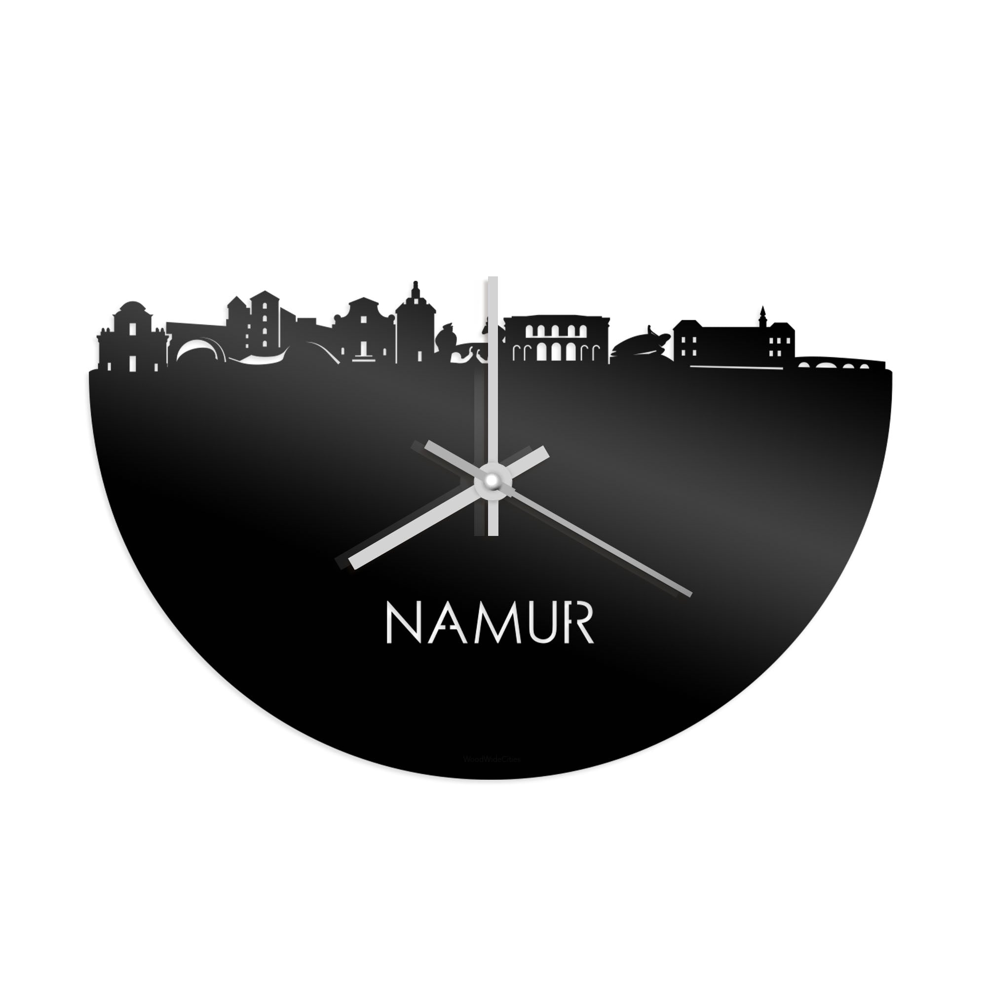 Skyline Klok Namur Zwart glanzend gerecycled kunststof cadeau decoratie relatiegeschenk van WoodWideCities