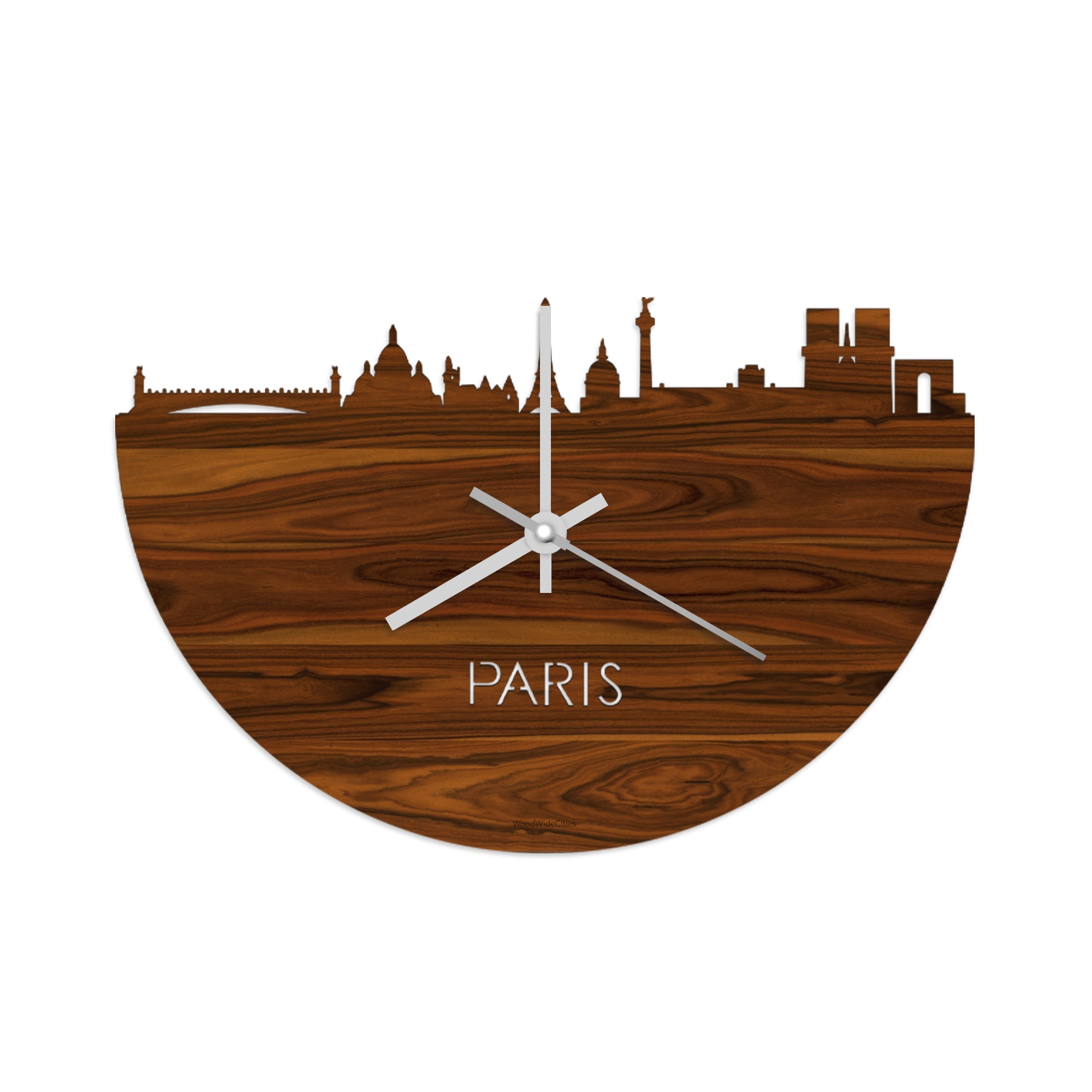 Time flies when you’re having fun! Dat geldt dubbelop als je deze multifunctionele houten wandklok van WoodWideCities in huis haalt. Deze klok met afbeelding van de skyline van Parijs houdt je bij de tijd, maar neemt je ook mee terug naar de stad waar je bent geboren of waar je hebt gestudeerd. Een mooie herinnering, elke keer als je kijkt hoe laat het is! Of wat dacht je van een afscheidscadeau, een tijdloos geschenk voor moeder- of vaderdag en andere mijlpalen zoals trouwerijen, het behalen van diploma’s en het openen van een nieuw kantoor of bedrijf, een spetterende binnenkomer voor je kind die gaat studeren in een andere stad of een ideaal cadeau voor de housewarming van kennissen en vrienden.