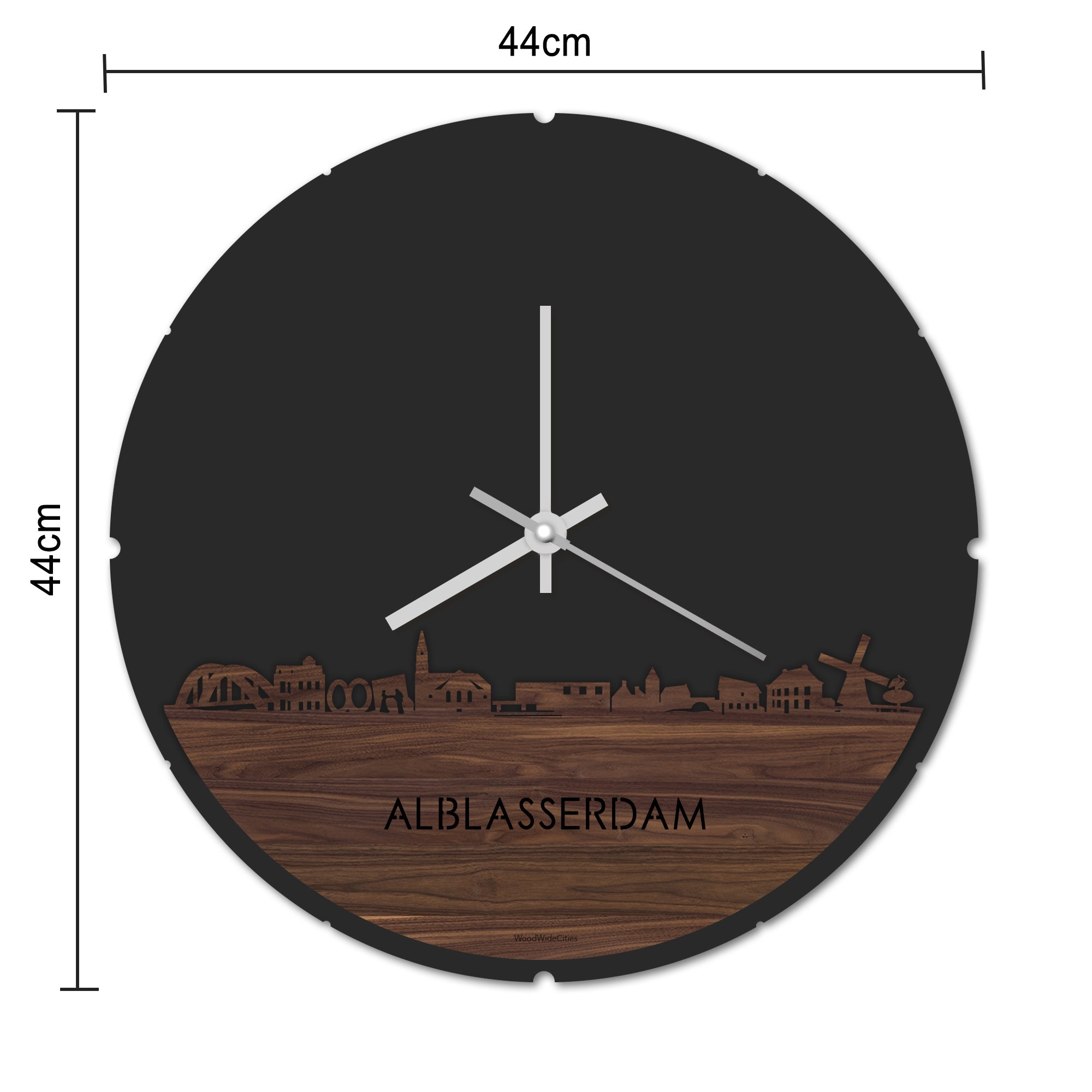 Skyline Klok Rond Alblasserdam Noten houten cadeau decoratie relatiegeschenk van WoodWideCities