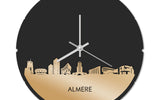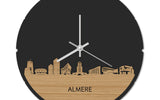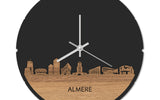 Skyline Klok Rond Almere Eiken Eiken houten cadeau decoratie relatiegeschenk van WoodWideCities