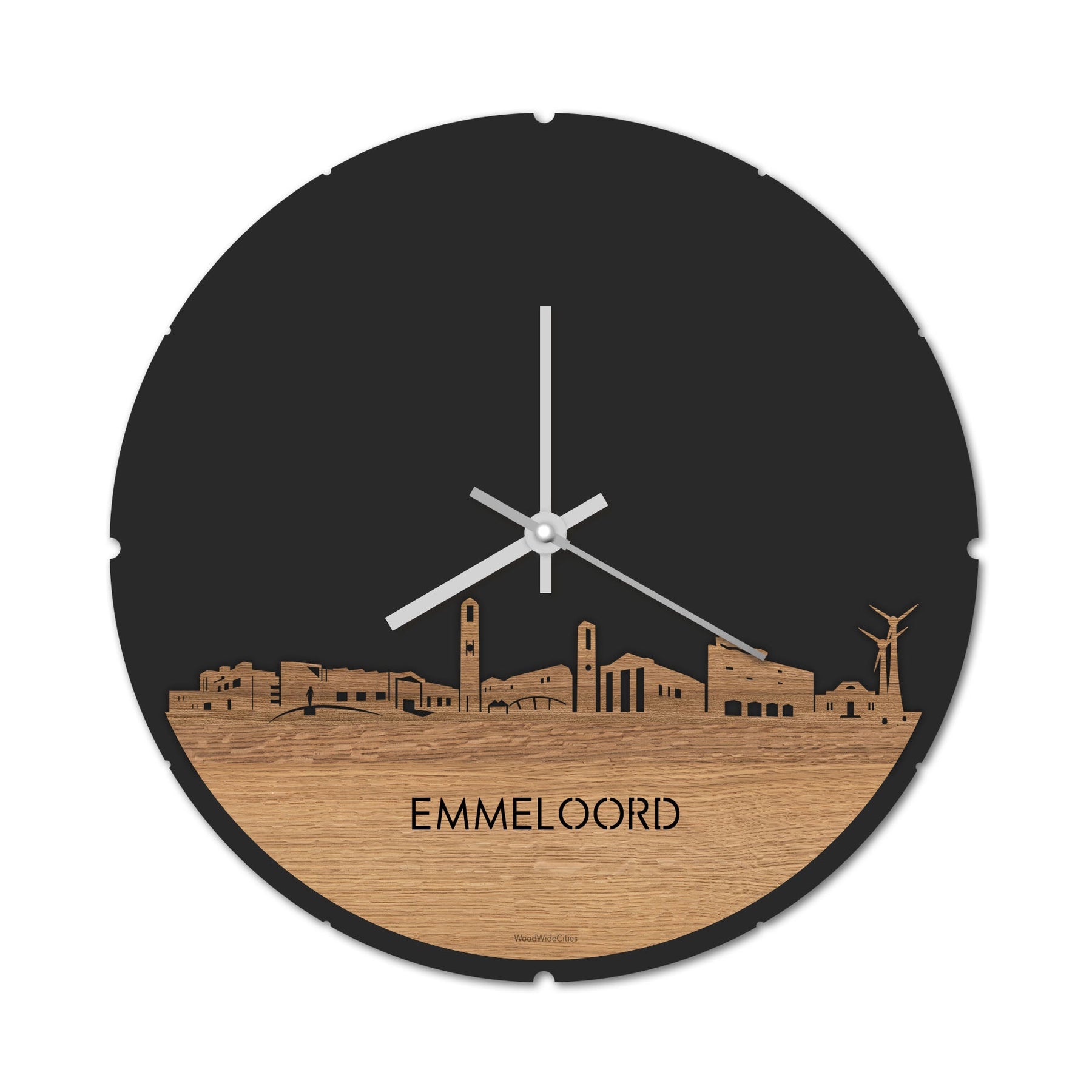 Blijf bij de tijd met de ronde skyline wandklok Dat geldt dubbelop als je deze multifunctionele houten wandklok van WoodWideCities in huis haalt. Deze klok met afbeelding van de skyline van Emmeloord houdt je bij de tijd, maar neemt je ook mee terug naar de stad waar je bent geboren of waar je hebt gestudeerd. Een mooie herinnering, elke keer als je kijkt hoe laat het is! Of wat dacht je van een afscheidscadeau, een tijdloos geschenk voor moeder- of vaderdag en andere mijlpalen zoals trouwerijen, het behalen van diploma’s en het openen van een nieuw kantoor of bedrijf, een spetterende binnenkomer voor je kind die gaat studeren in een andere stad of een ideaal cadeau voor de housewarming van kennissen en vrienden.