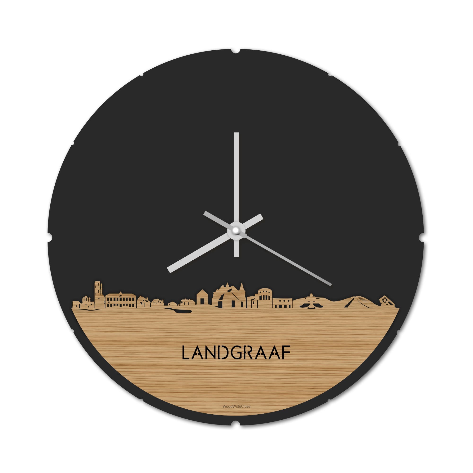 Blijf bij de tijd met de ronde skyline wandklok Dat geldt dubbelop als je deze multifunctionele houten wandklok van WoodWideCities in huis haalt. Deze klok met afbeelding van de skyline van Landgraaf houdt je bij de tijd, maar neemt je ook mee terug naar de stad waar je bent geboren of waar je hebt gestudeerd. Een mooie herinnering, elke keer als je kijkt hoe laat het is! Of wat dacht je van een afscheidscadeau, een tijdloos geschenk voor moeder- of vaderdag en andere mijlpalen zoals trouwerijen, het behalen van diploma’s en het openen van een nieuw kantoor of bedrijf, een spetterende binnenkomer voor je kind die gaat studeren in een andere stad of een ideaal cadeau voor de housewarming van kennissen en vrienden.