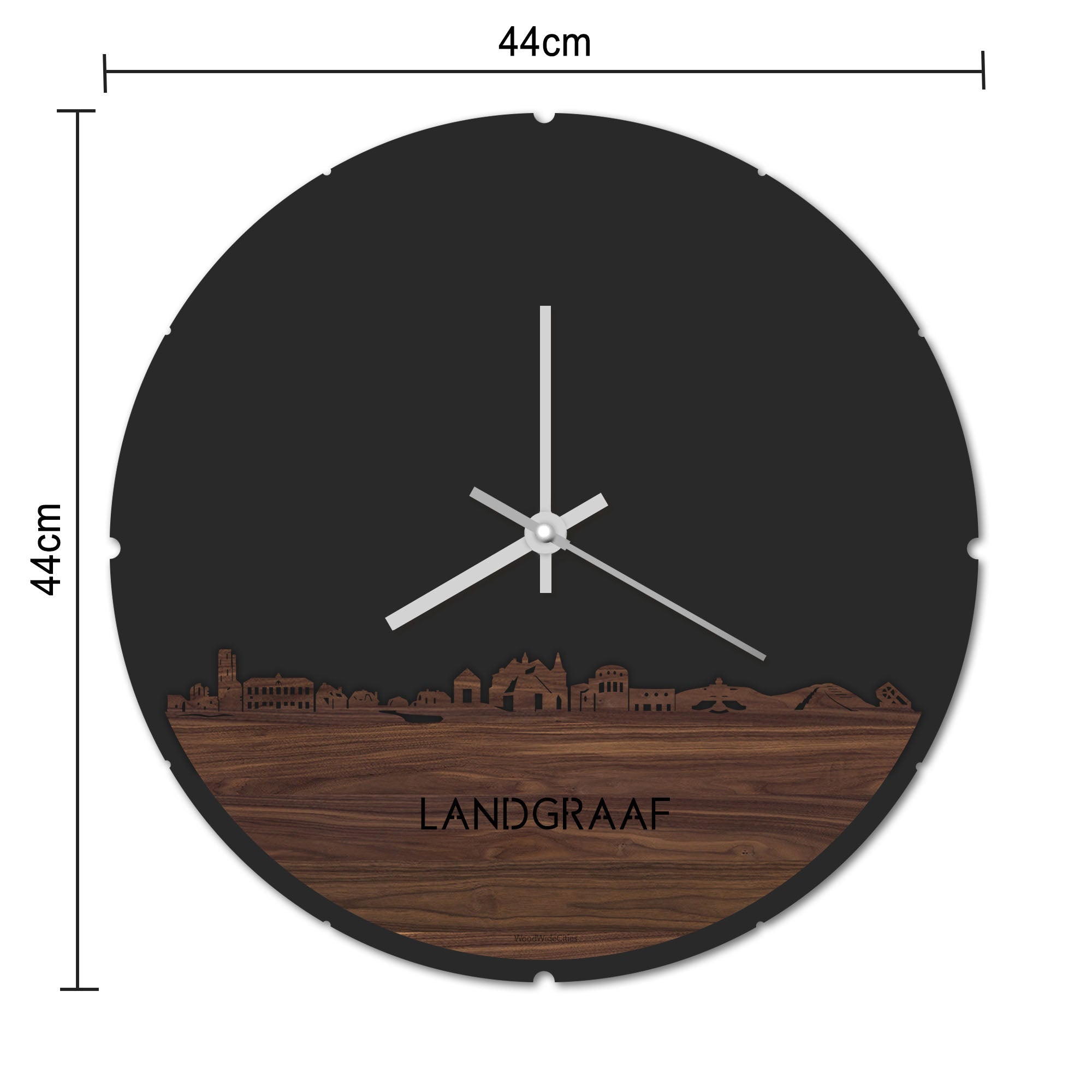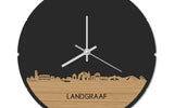 Blijf bij de tijd met de ronde skyline wandklok Dat geldt dubbelop als je deze multifunctionele houten wandklok van WoodWideCities in huis haalt. Deze klok met afbeelding van de skyline van Landgraaf houdt je bij de tijd, maar neemt je ook mee terug naar de stad waar je bent geboren of waar je hebt gestudeerd. Een mooie herinnering, elke keer als je kijkt hoe laat het is! Of wat dacht je van een afscheidscadeau, een tijdloos geschenk voor moeder- of vaderdag en andere mijlpalen zoals trouwerijen, het behalen van diploma’s en het openen van een nieuw kantoor of bedrijf, een spetterende binnenkomer voor je kind die gaat studeren in een andere stad of een ideaal cadeau voor de housewarming van kennissen en vrienden.