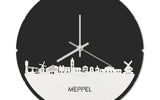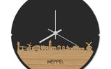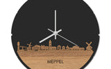 Blijf bij de tijd met de ronde skyline wandklok Dat geldt dubbelop als je deze multifunctionele houten wandklok van WoodWideCities in huis haalt. Deze klok met afbeelding van de skyline van Meppel houdt je bij de tijd, maar neemt je ook mee terug naar de stad waar je bent geboren of waar je hebt gestudeerd. Een mooie herinnering, elke keer als je kijkt hoe laat het is! Of wat dacht je van een afscheidscadeau, een tijdloos geschenk voor moeder- of vaderdag en andere mijlpalen zoals trouwerijen, het behalen van diploma’s en het openen van een nieuw kantoor of bedrijf, een spetterende binnenkomer voor je kind die gaat studeren in een andere stad of een ideaal cadeau voor de housewarming van kennissen en vrienden.