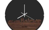 Eiken, Bamboe, Noten, Zwart MDF en Palissander: de wandklok met skyline van Mons is verkrijgbaar in verschillende soorten hout. De houtsoorten die wij gebruiken zijn duurzaam en hebben een keurmerk. Bij het produceren van houten decoraties komen geen schadelijke stoffen vrij, hout is biologisch afbreekbaar en hout gaat langer mee. Dat vinden wij belangrijk! Daarnaast ‘werkt’ hout, dus is de houten afwerking elke keer anders. Zo heeft die ene wandklok wel een kring en de andere niet. Dat maakt jouw klok uniek!