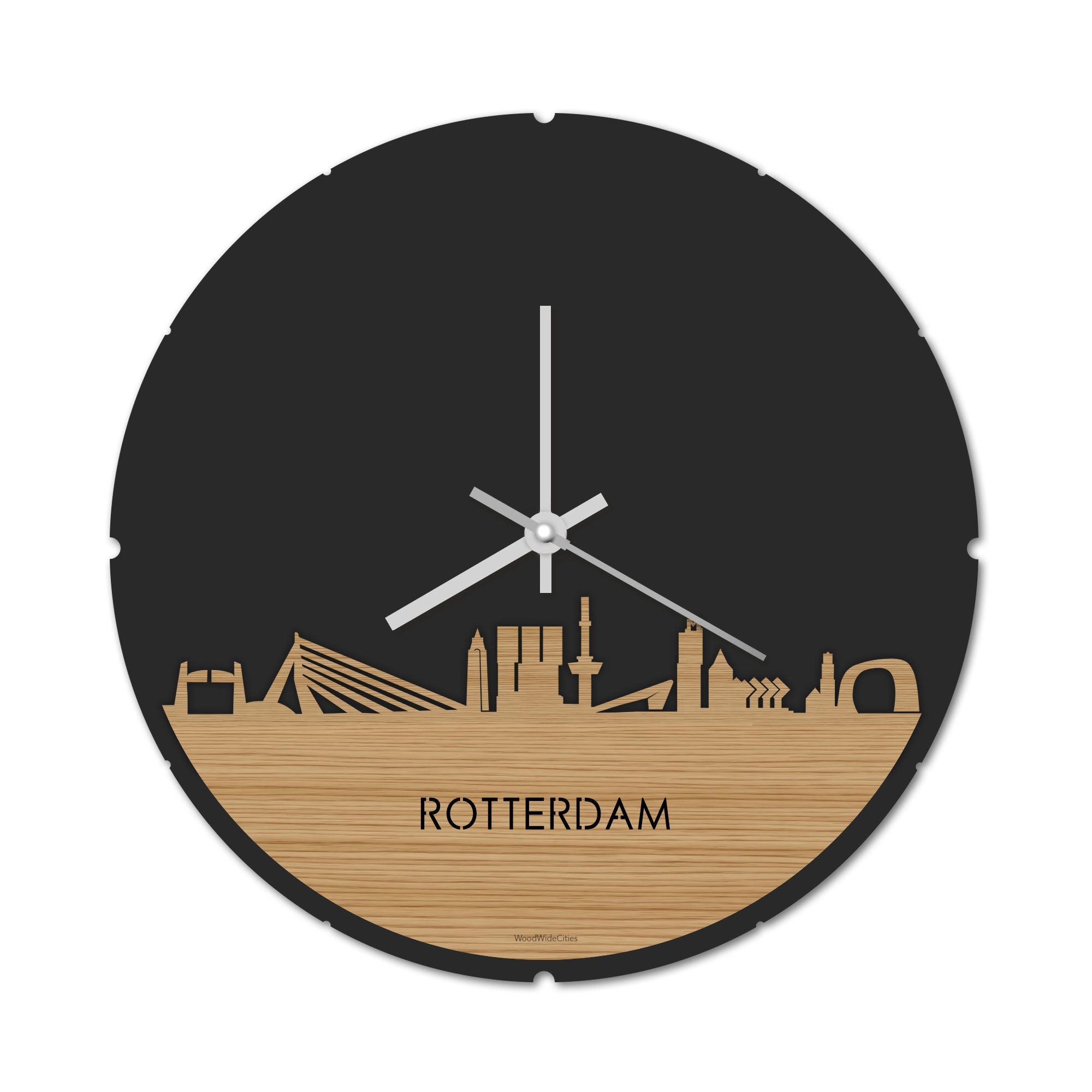 Skyline Klok Rond Rotterdam Bamboe Bamboe  houten cadeau decoratie relatiegeschenk van WoodWideCities