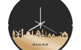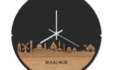 Blijf bij de tijd met de ronde skyline wandklok Dat geldt dubbelop als je deze multifunctionele houten wandklok van WoodWideCities in huis haalt. Deze klok met afbeelding van de skyline van Waalwijk houdt je bij de tijd, maar neemt je ook mee terug naar de stad waar je bent geboren of waar je hebt gestudeerd. Een mooie herinnering, elke keer als je kijkt hoe laat het is! Of wat dacht je van een afscheidscadeau, een tijdloos geschenk voor moeder- of vaderdag en andere mijlpalen zoals trouwerijen, het behalen van diploma’s en het openen van een nieuw kantoor of bedrijf, een spetterende binnenkomer voor je kind die gaat studeren in een andere stad of een ideaal cadeau voor de housewarming van kennissen en vrienden.